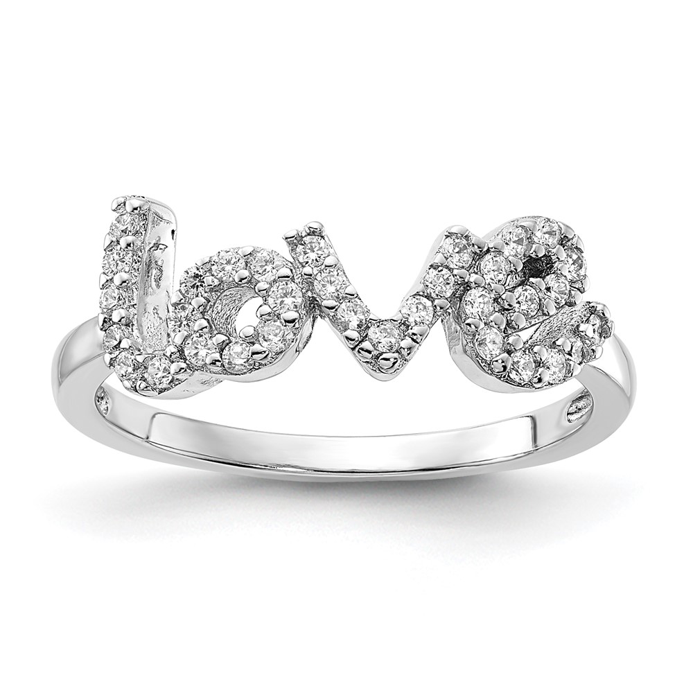Sterling Silver Rhodium-plated "LOVE" CZ Ring