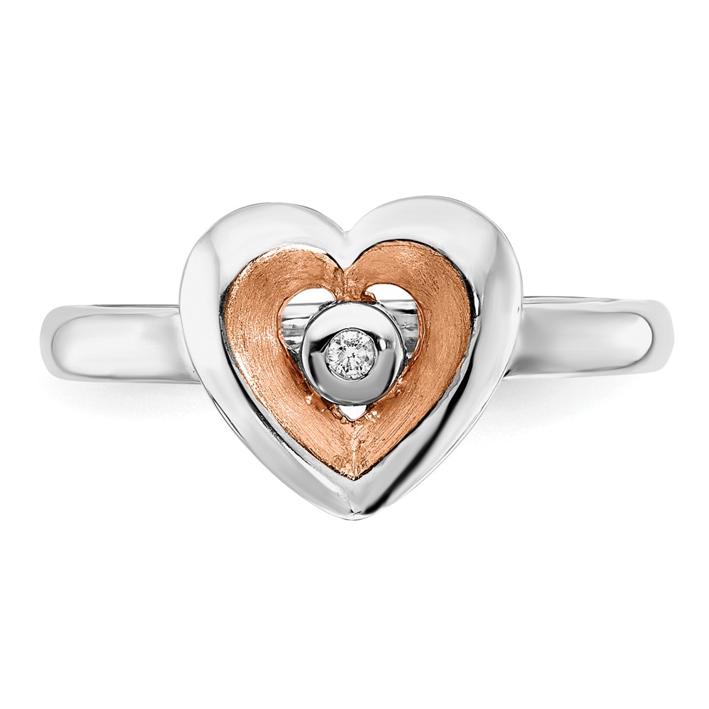 Sterling Silver RH-plated Rose Gold-plated Polished Satin Diamond Heart Rin