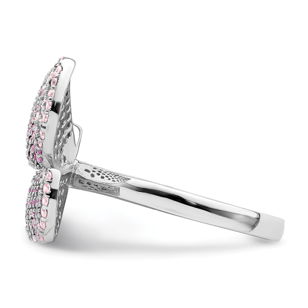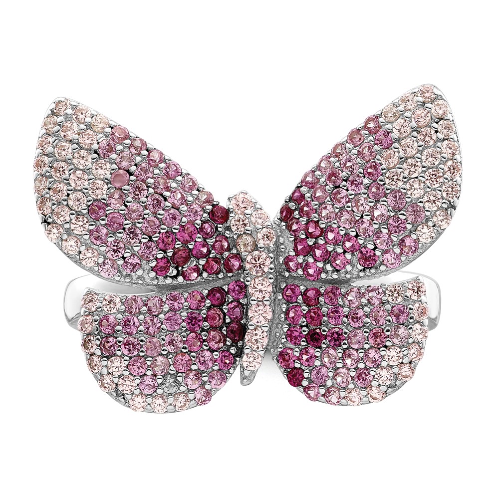 Sterling Silver Rhodium-plated Polished Pink CZ Butterfly Ring