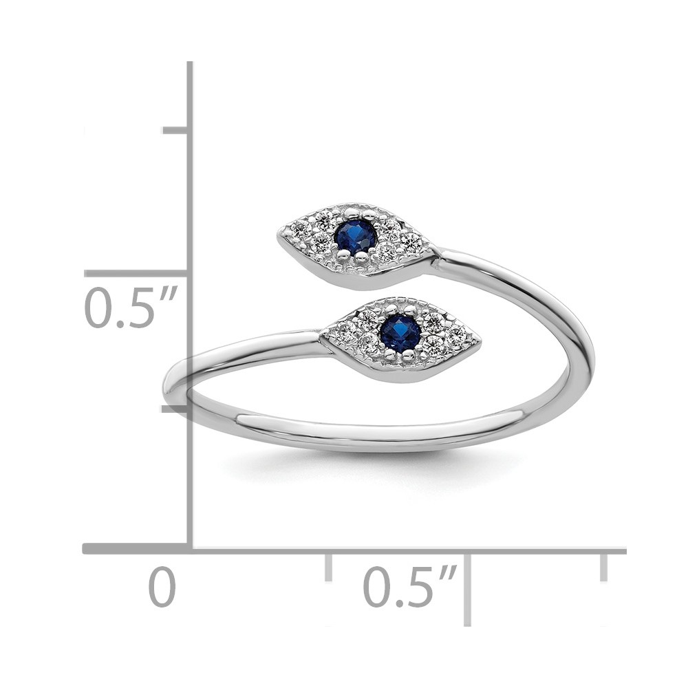Sterling Silver Rhodium-plated Polished Blue & White CZ Eye Adjustable Ring