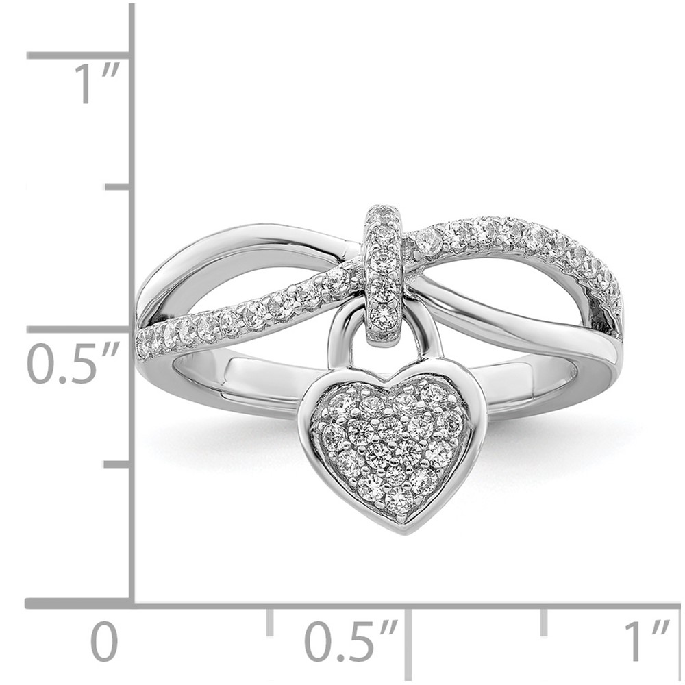 Sterling Silver Rhodium-plated CZ Heart Dangle Ring