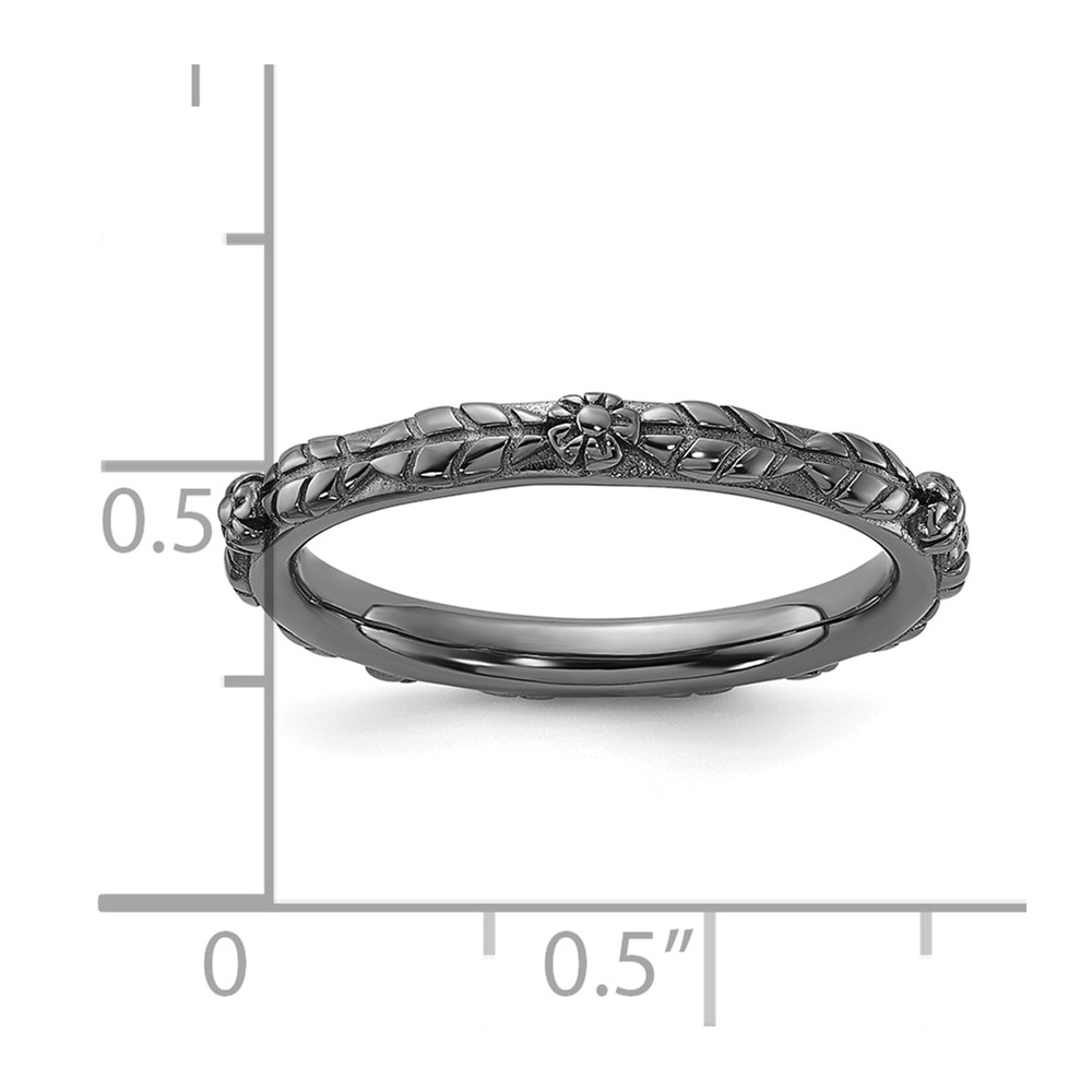 Sterling Silver Stackable Expressions Black Rhodium Textured Flowers Ring
