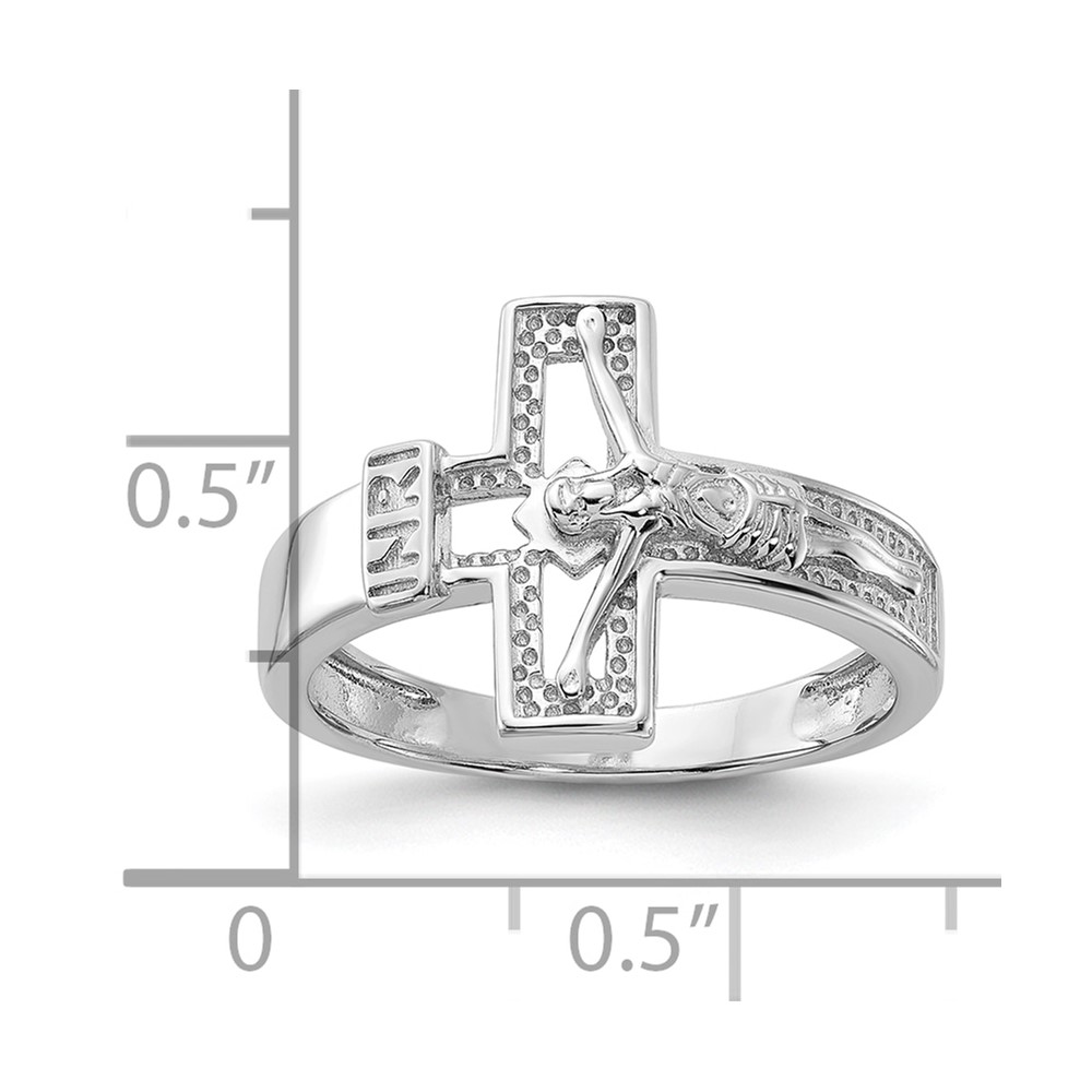 Sterling Silver Rhodium-plated INRI Crucifix Ring