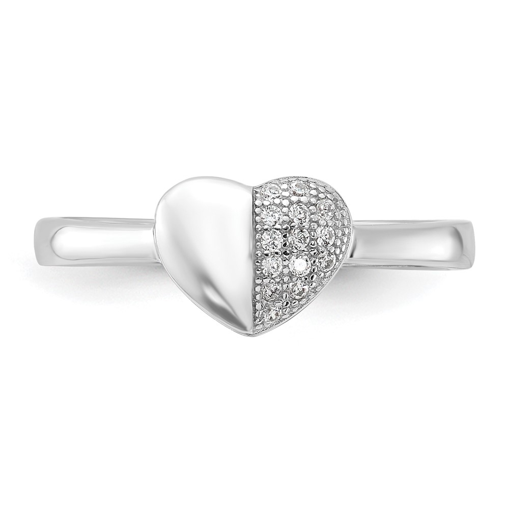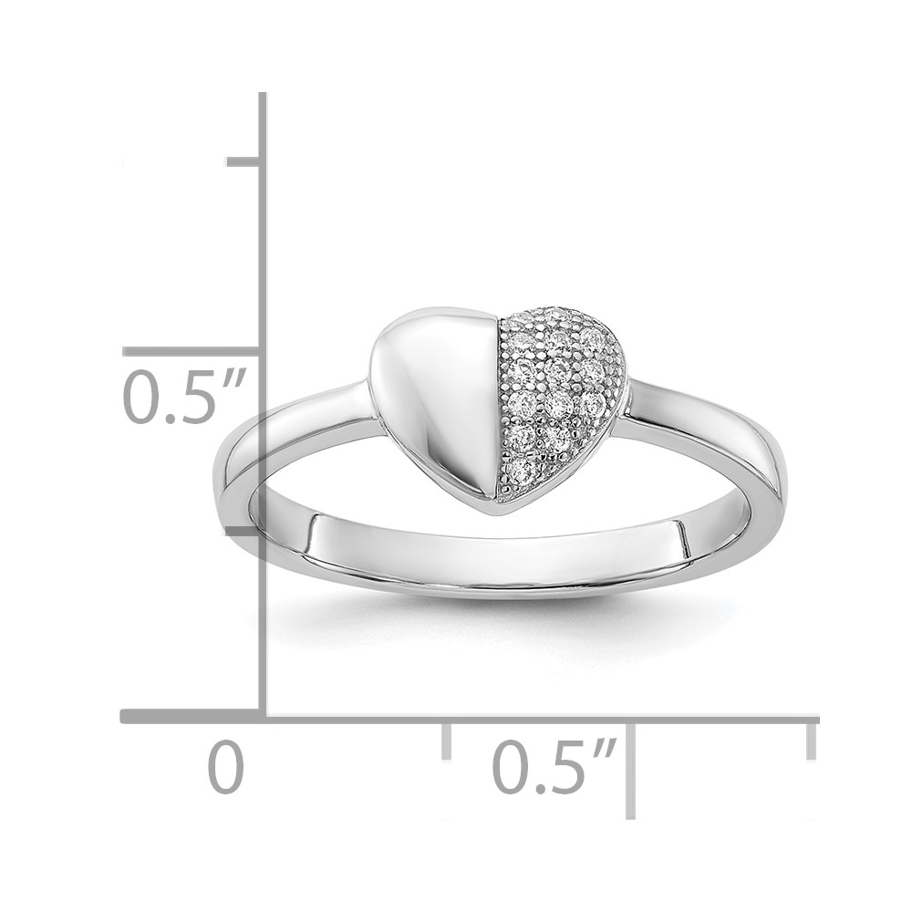 Sterling Silver Rhodium-plated CZ Polished Heart Ring