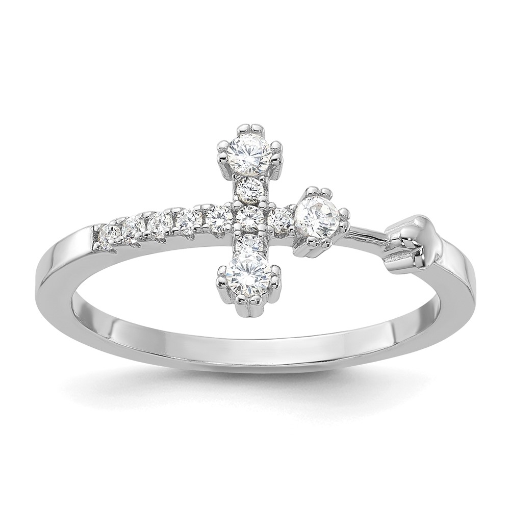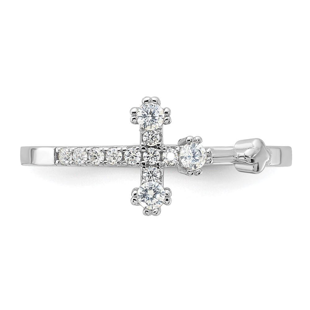 Sterling Silver Flash Platinum-plated CZ Cross Ring
