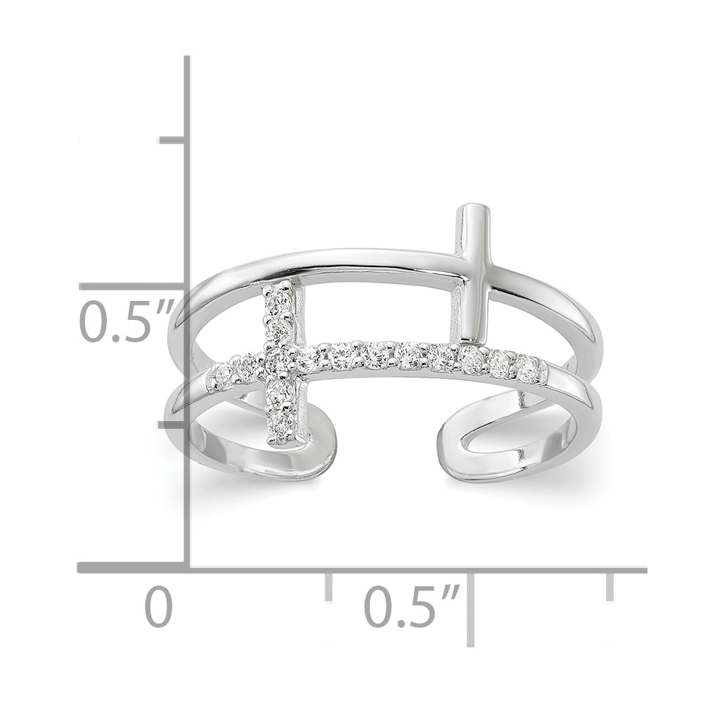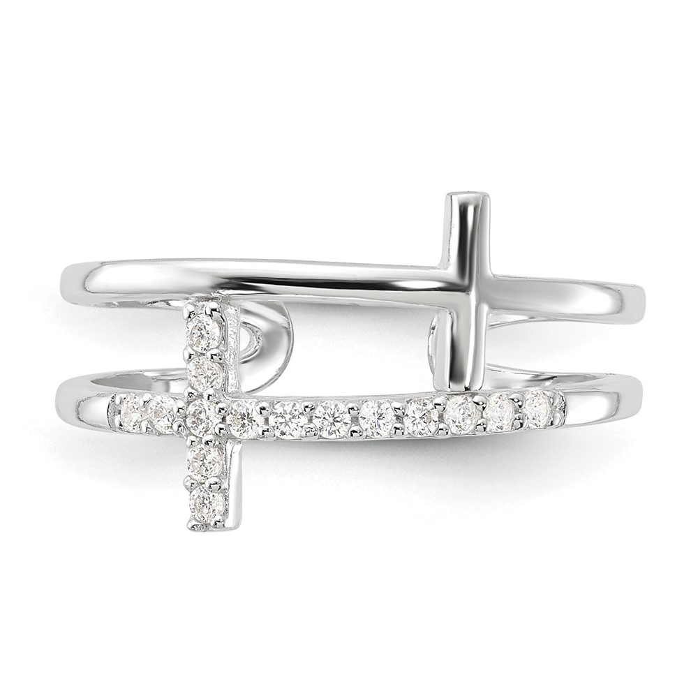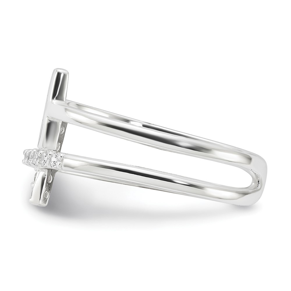 Sterling Silver E-coated CZ Cross Open Back Ring