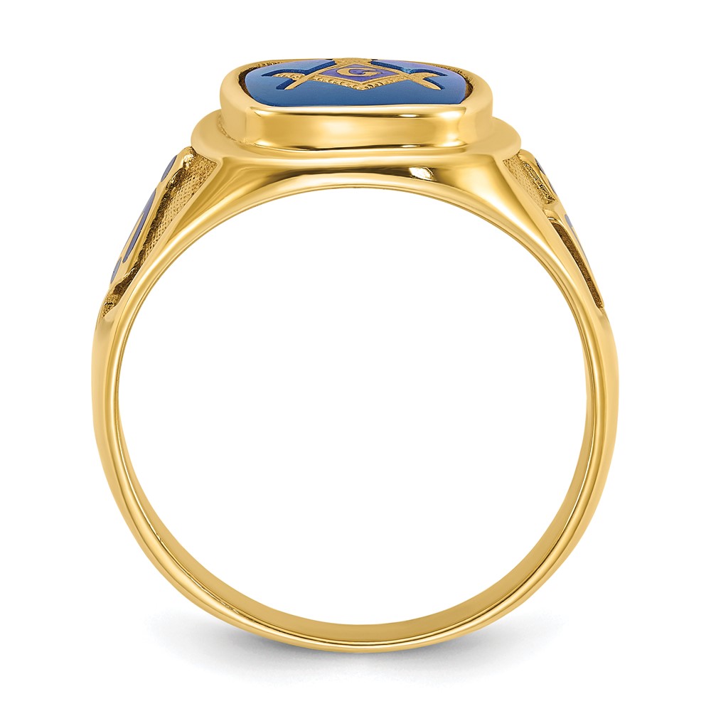 IBGoodman 14k Men's Polished and Textured with Blue Enamel and Lab Created Sapphire Blue Lodge Master Masonic Ring