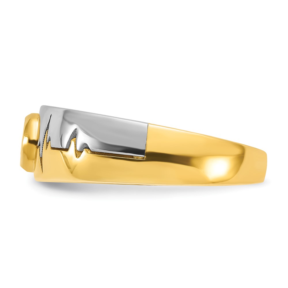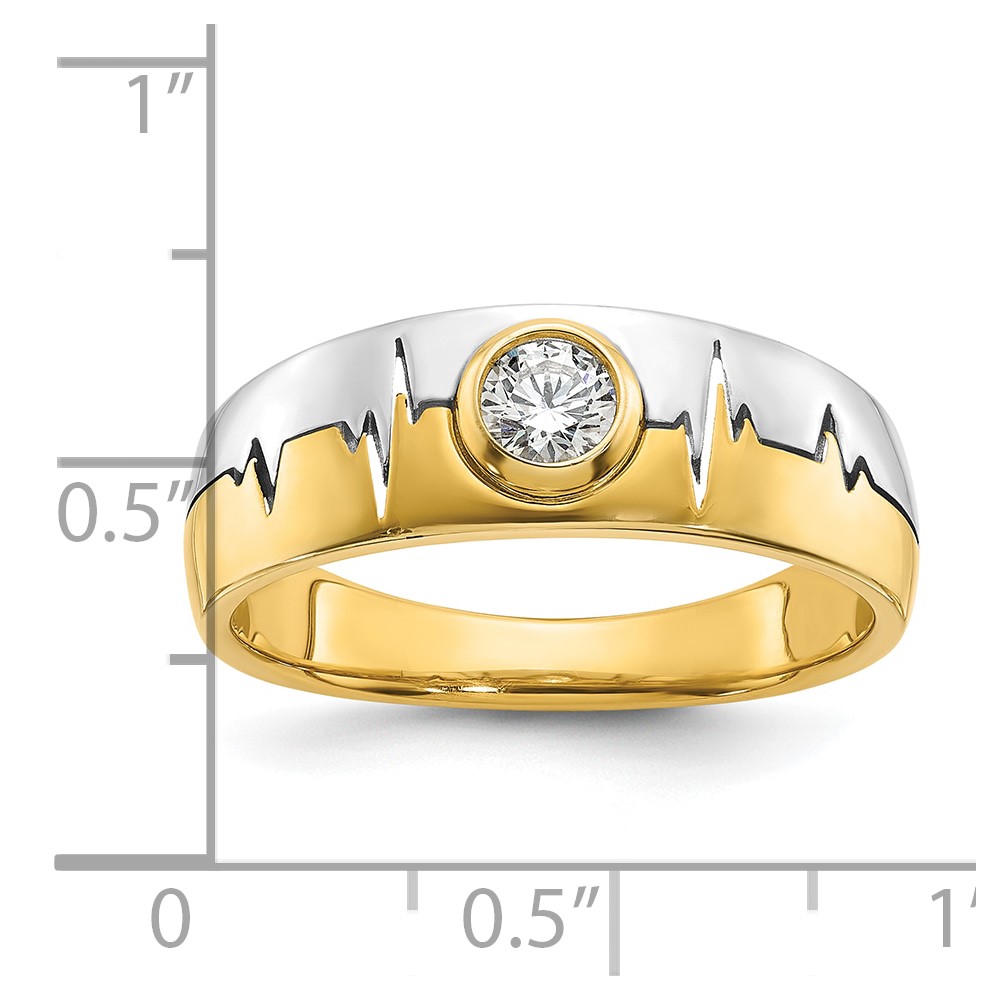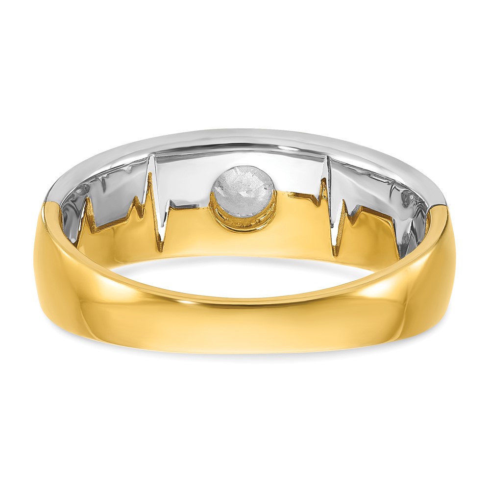 IBGoodman 14k Two-tone Men's Polished and Grooved Bezel Set 2/5 Carat BB Quality Diamond Heartbeat Ring