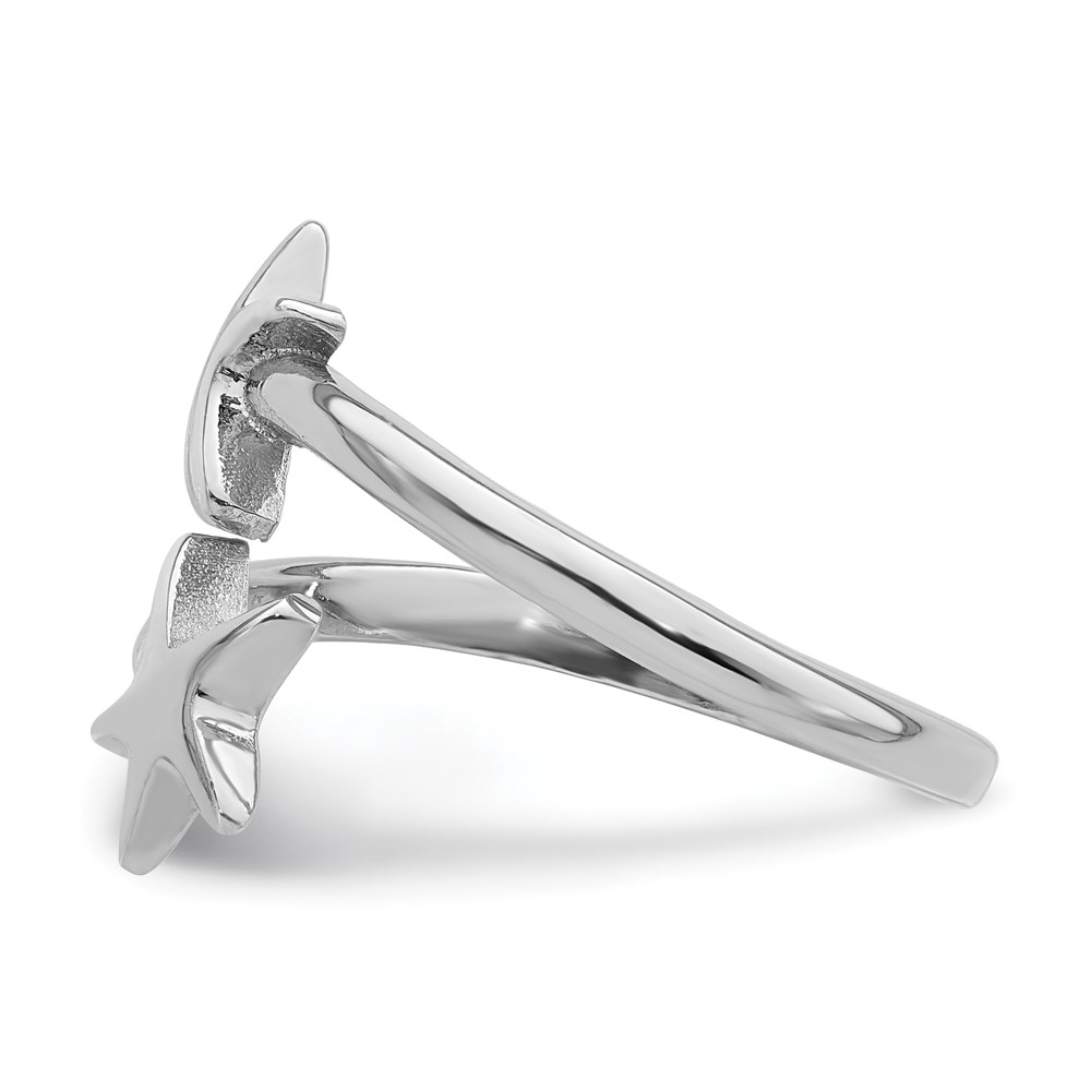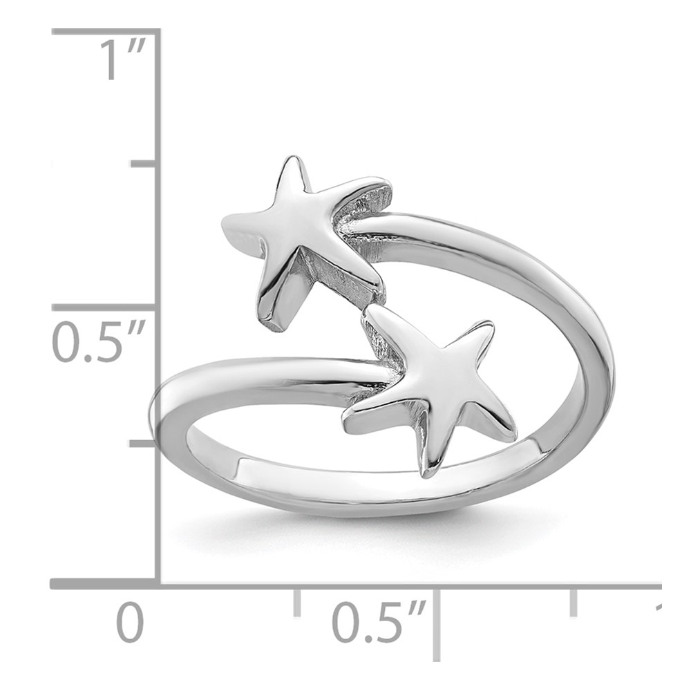 Sterling Silver Rhodium-plated Polished Starfish Double Adjustable Ring