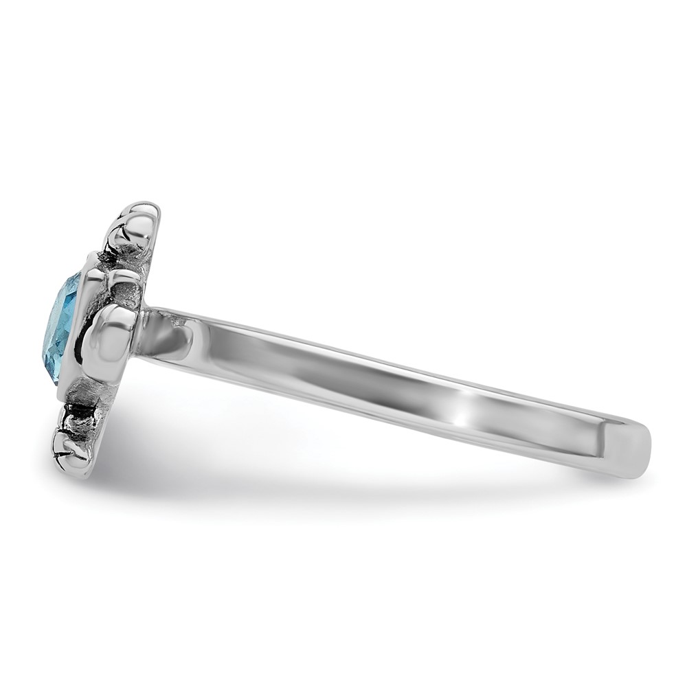 Sterling Silver Rhodium-plated Antiqued Adjustable Turtle Crystal Inlay Ring