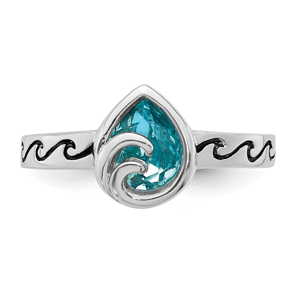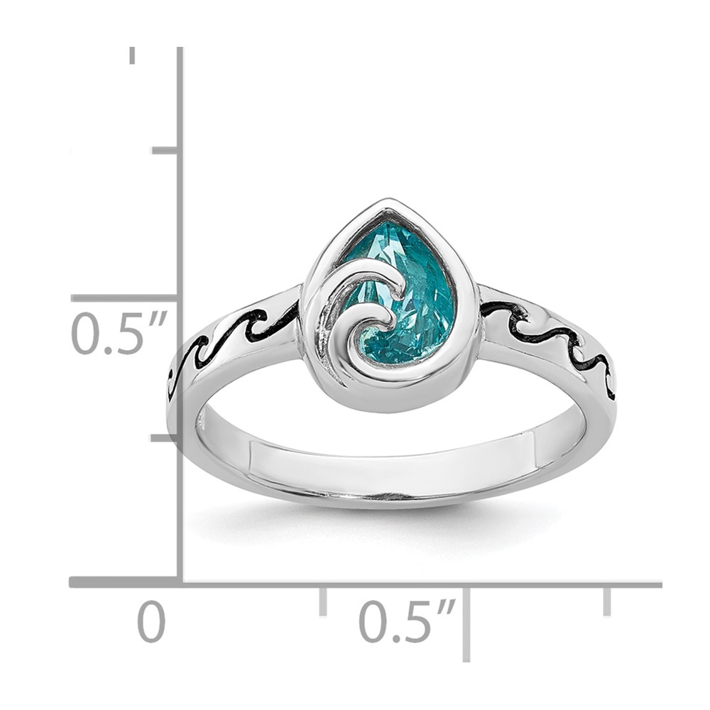 Sterling Silver Rhodium-Plated Polished Double Wave Crystal Inlay Ring