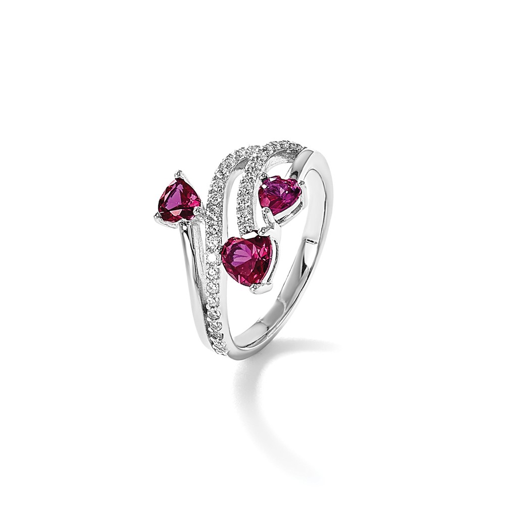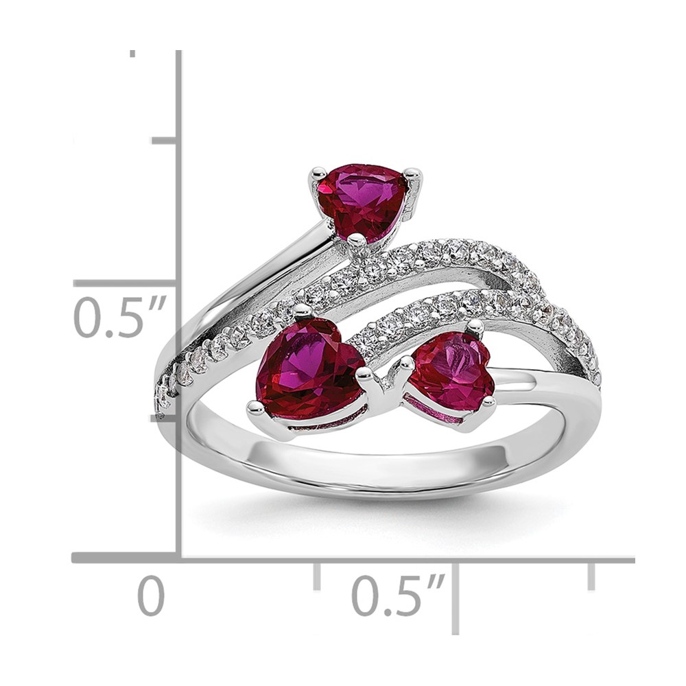 Cheryl M Sterling Silver Rhodium-plated Polished Lab Created Ruby and CZ Hearts Ring