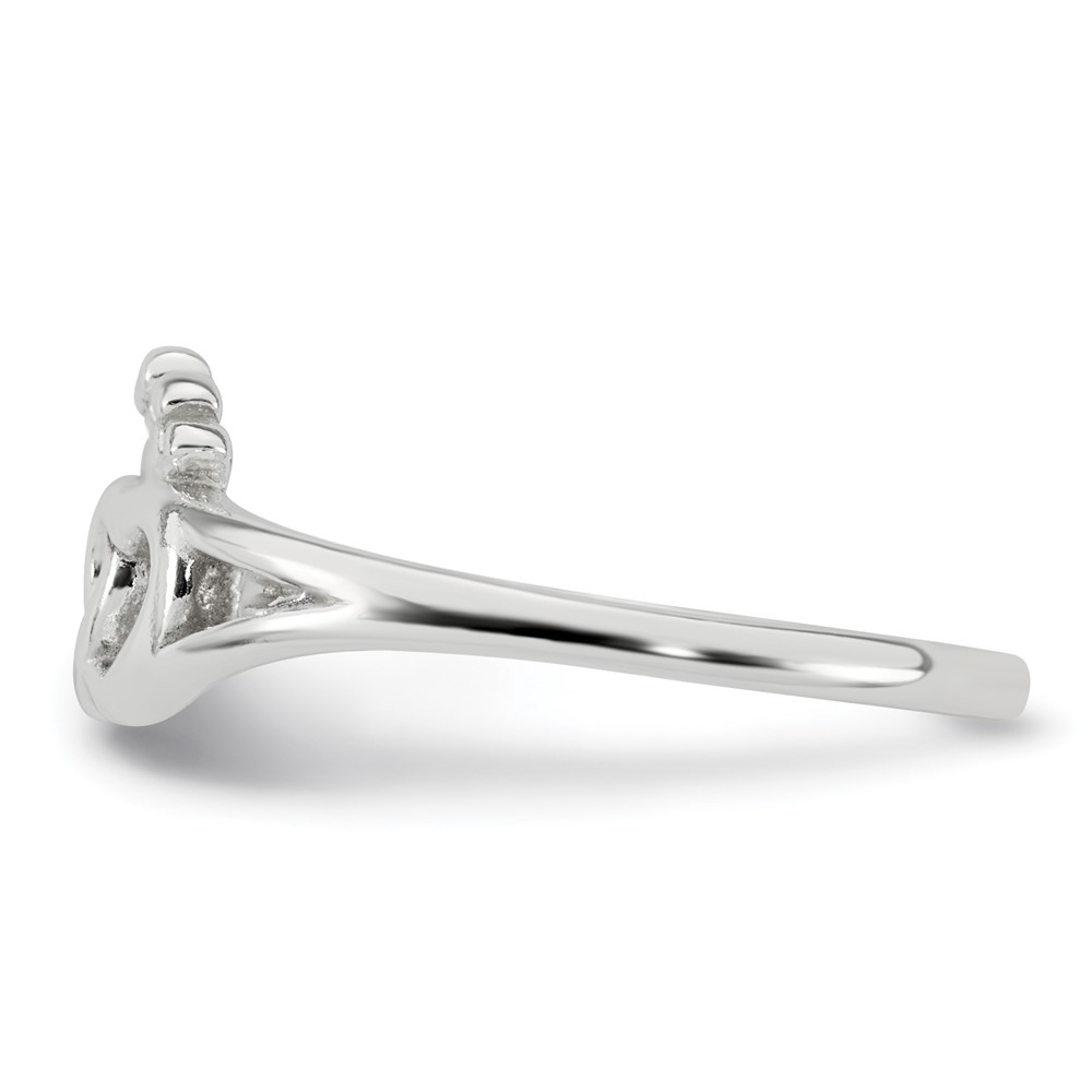 Sterling Silver Polished Interlocking Hearts With Crown Ring