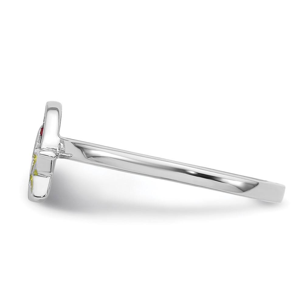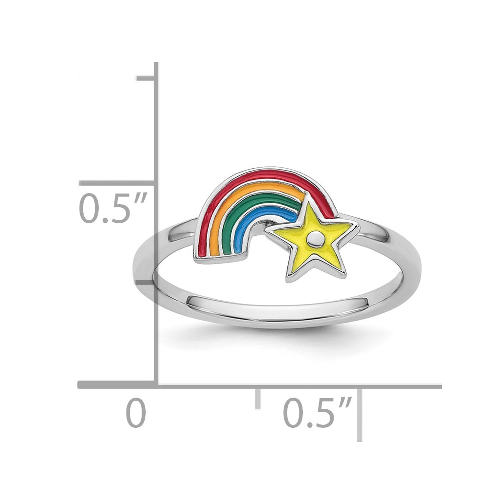 Sterling Silver Rhodium-plated Children's Size 3 Multicolored Enameled Rainbow with Star Ring