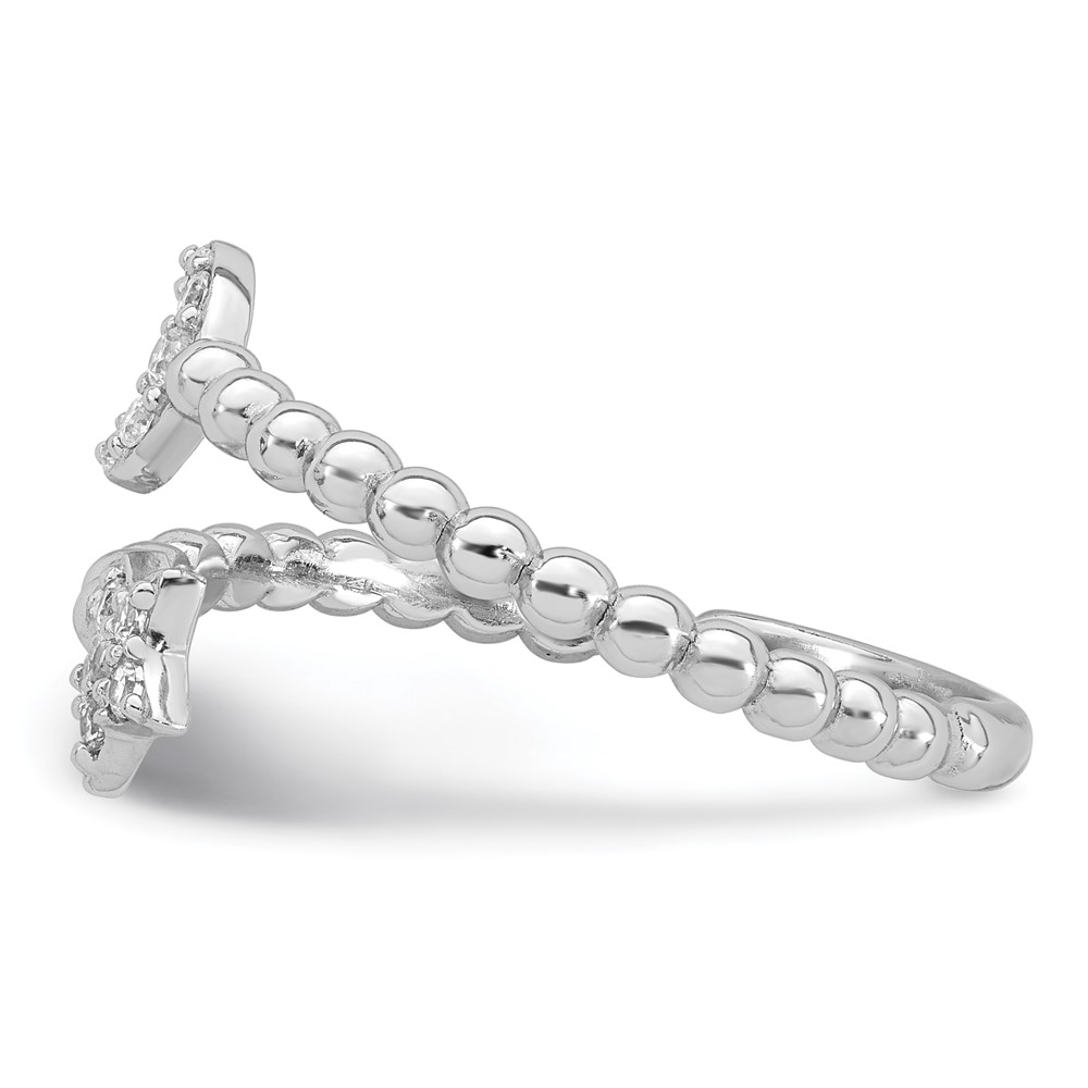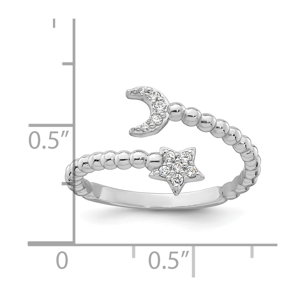 Sterling Silver Rhodium-plated Polished and Beaded Adjustable CZ Moon and Star Size 8 Ring