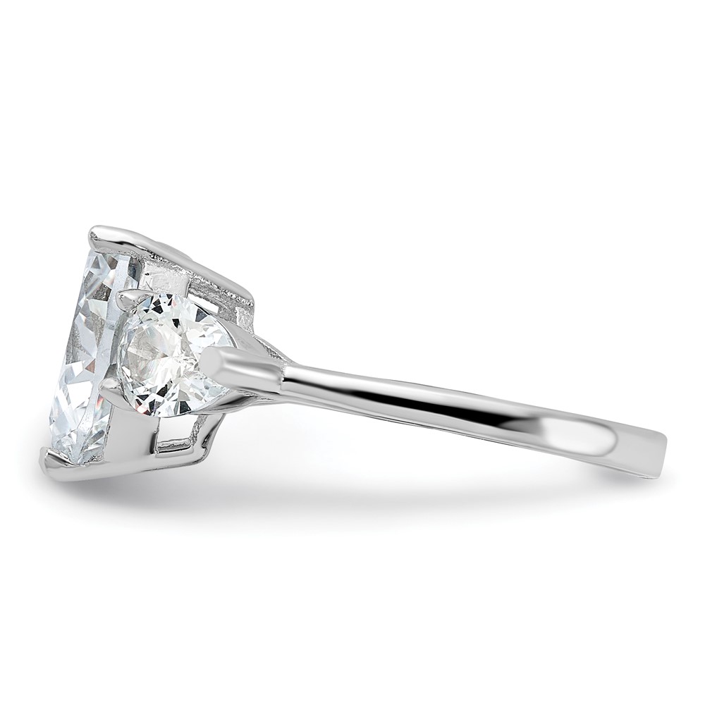 Sterling Silver Rhodium-plated Heart Shape Center CZ 3-Stone Ring