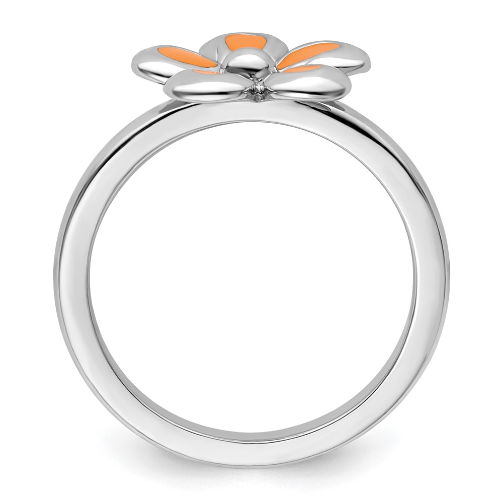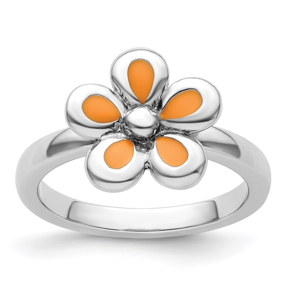 Sterling Silver Stackable Expressions Polished Orange Enameled Flower Ring