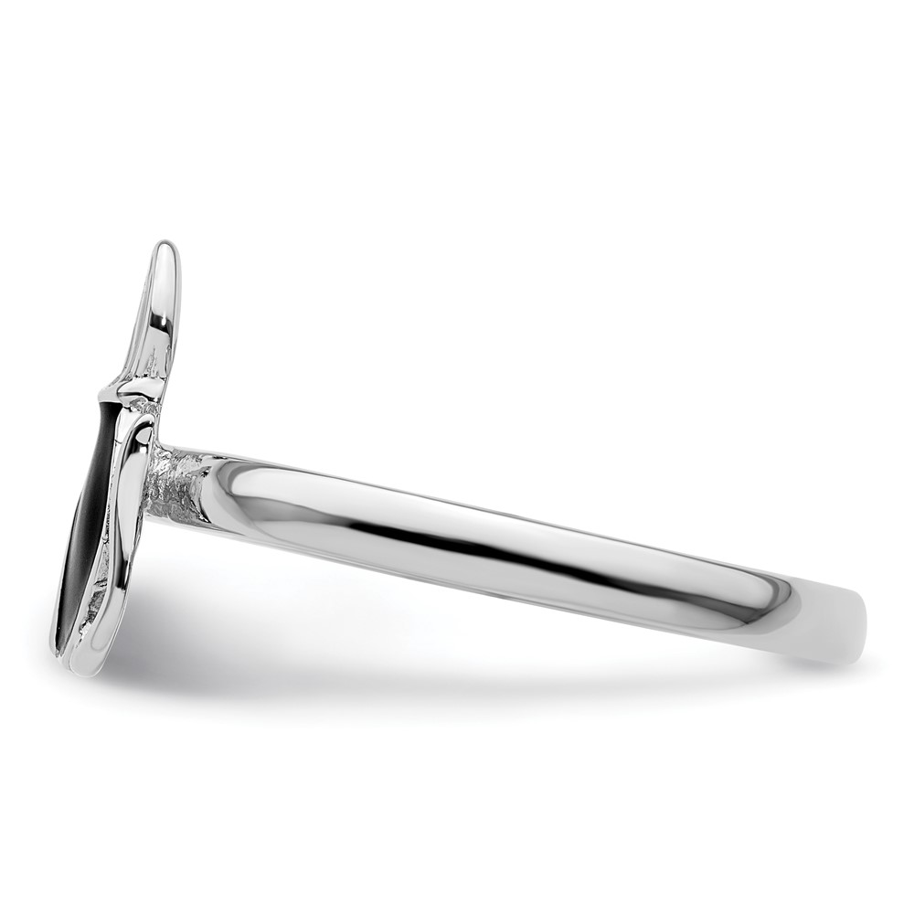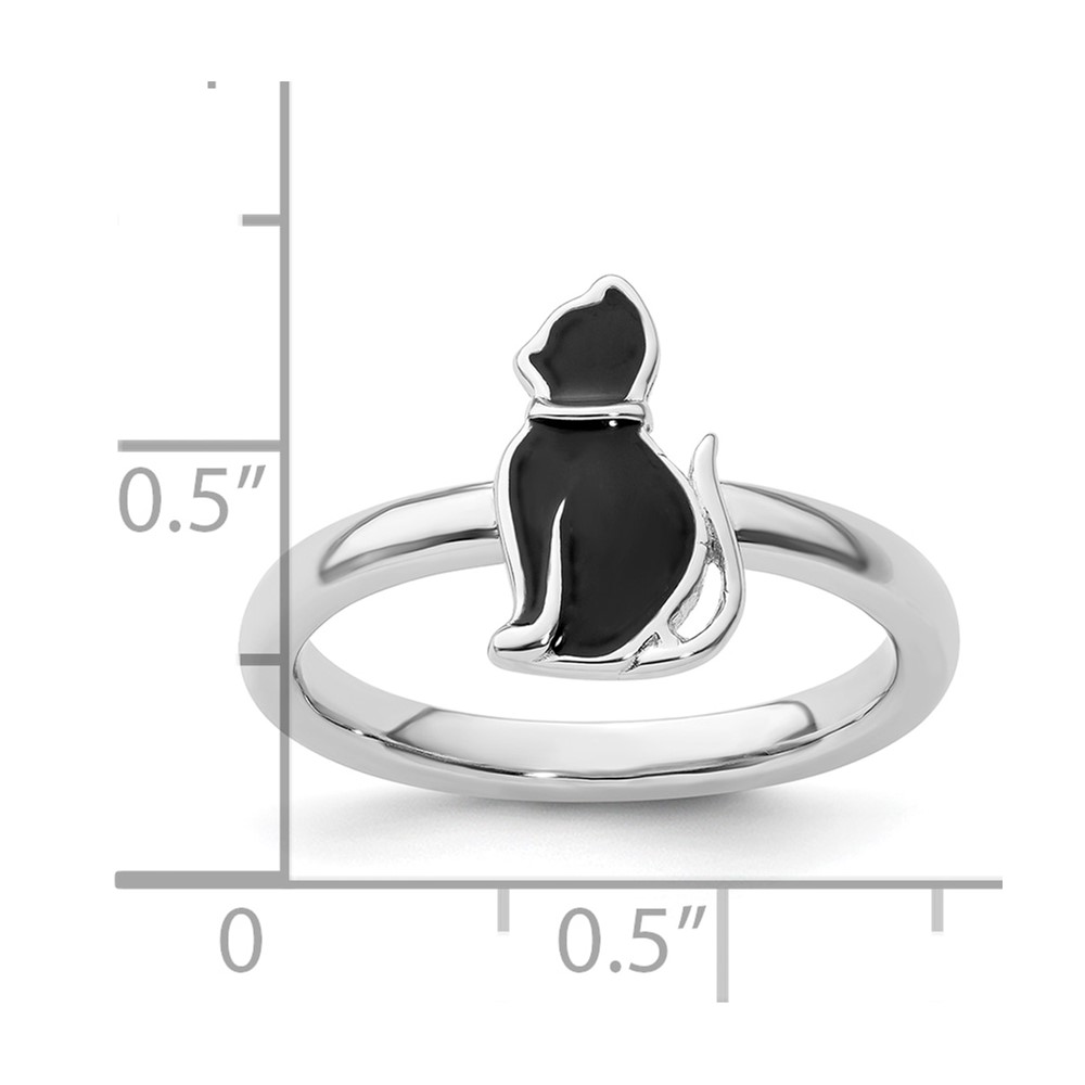 Sterling Silver Stackable Expressions Black Enameled Cat Ring