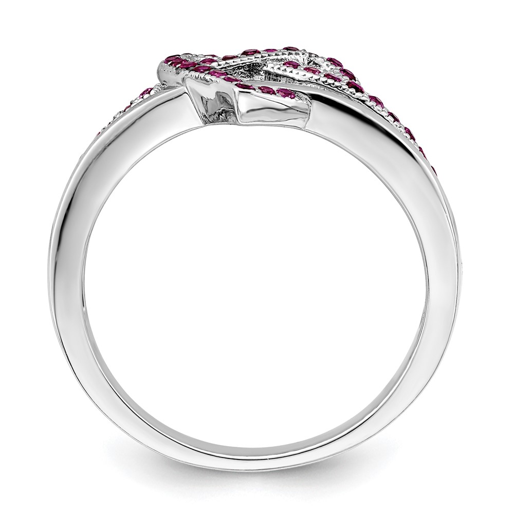 Brilliant Embers Sterling Silver Rhodium-plated 41 Stone Micro Pavé Red and White CZ Heart Ring