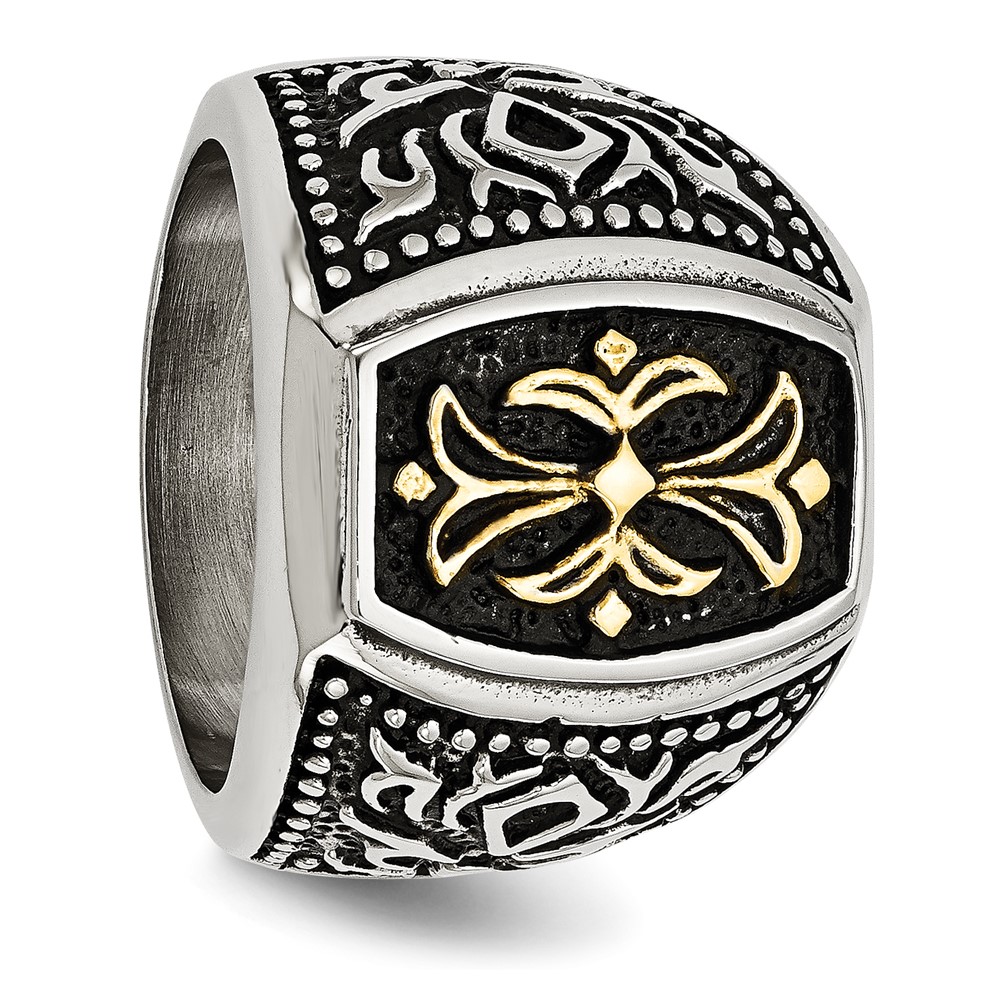 Stainless Steel Antiqued Polished & Textured Yellow IP-plated Cross Ring