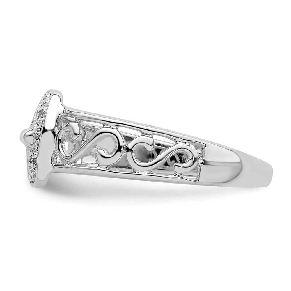 Sterling Silver Rhodium Plated Diamond Buckle Ring