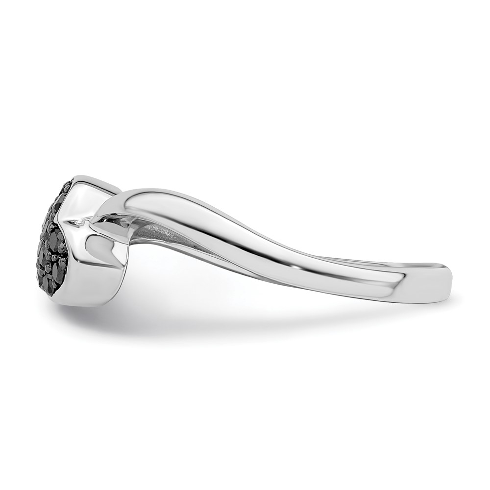 White Night Sterling Silver Rhodium-plated Black Diamond Heart Ring