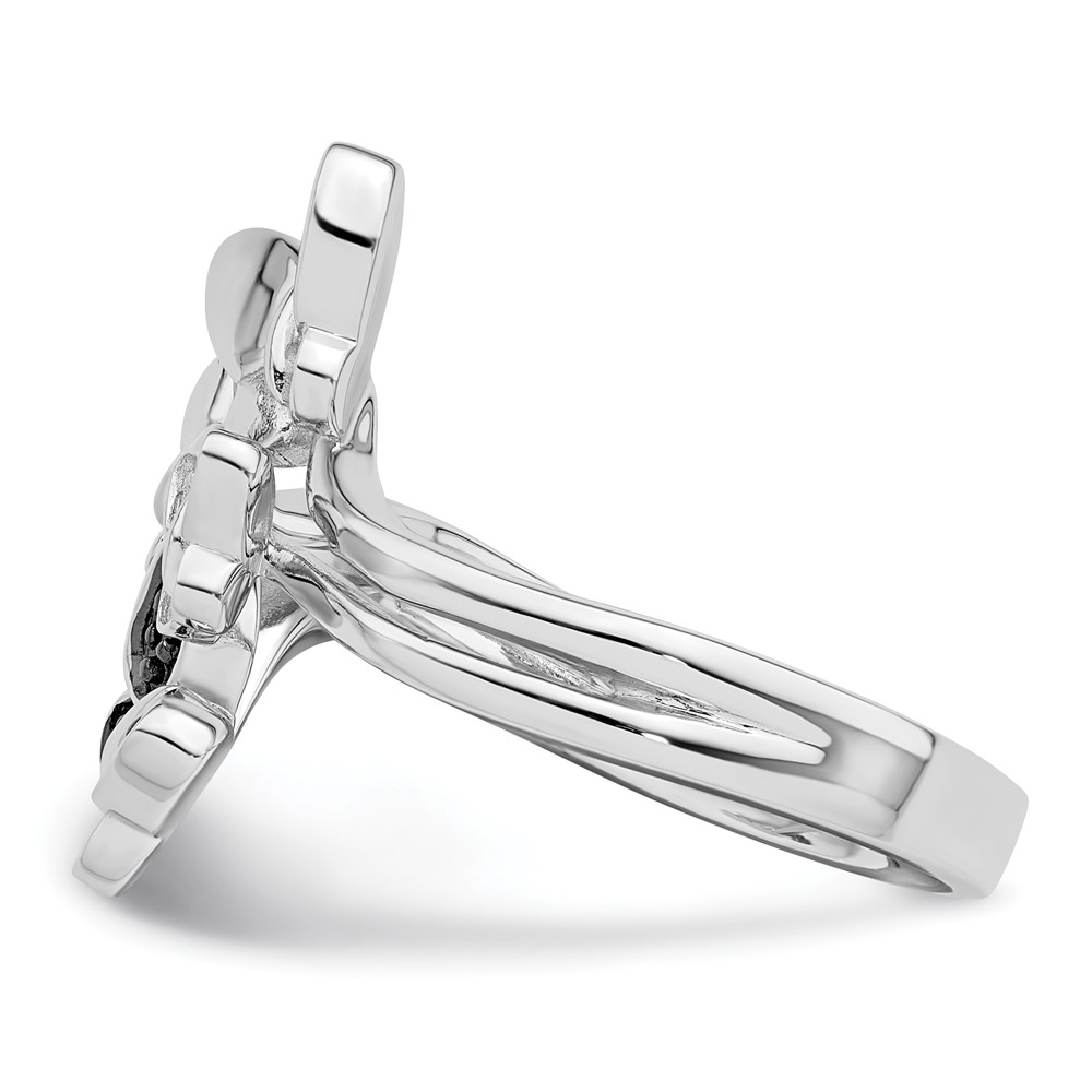 White Night Sterling Silver Rhodium-plated White and Black Diamond Butterfly Ring