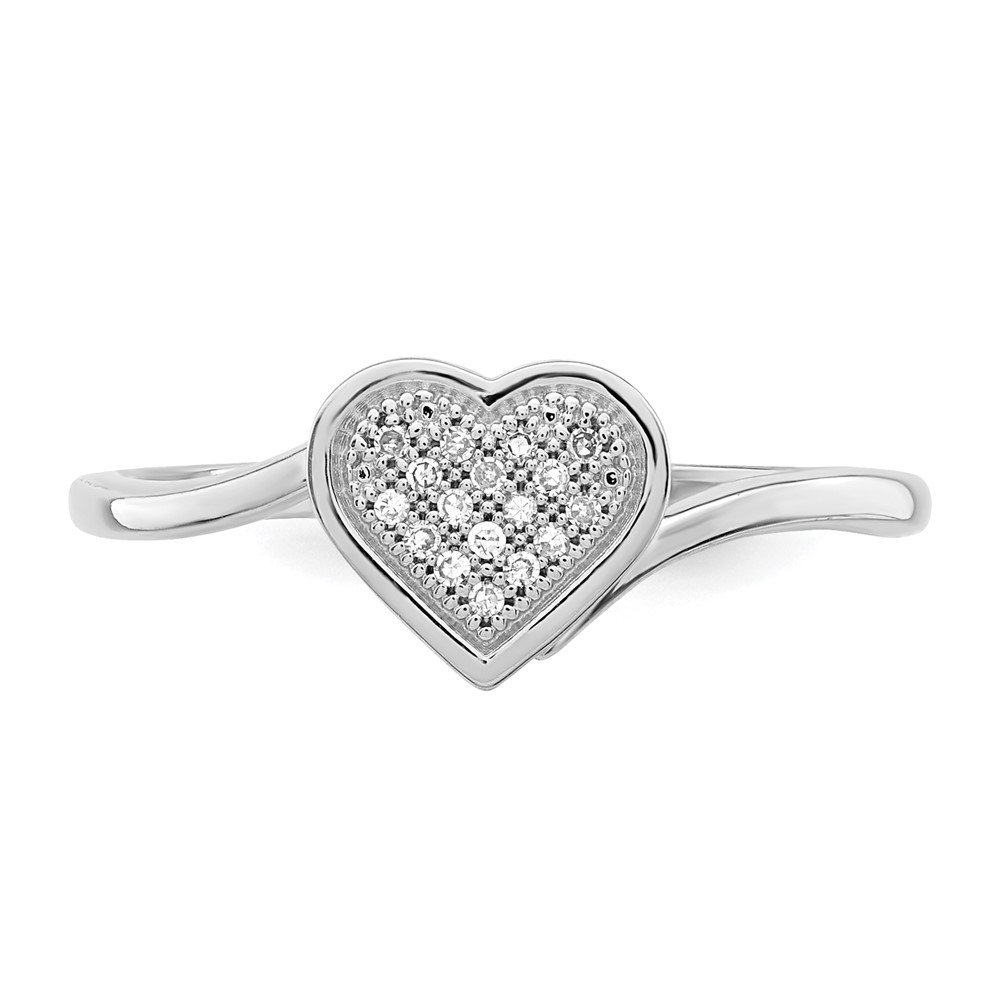 Sterling Silver Rhodium Plated Diamond Heart Ring