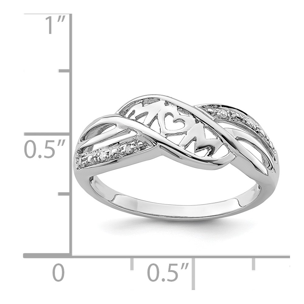 Sterling Silver Rhodium Plated Diamond Heart MOM Ring