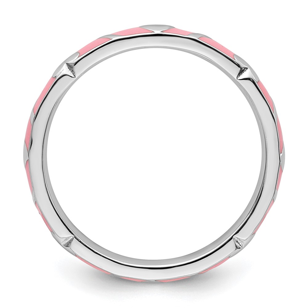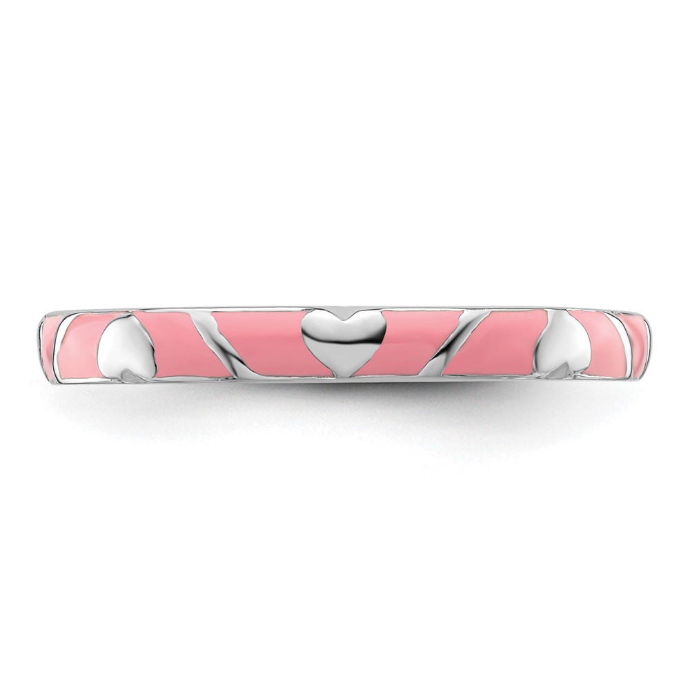 Sterling Silver Stackable Expressions Pink Enamel Heart Ring