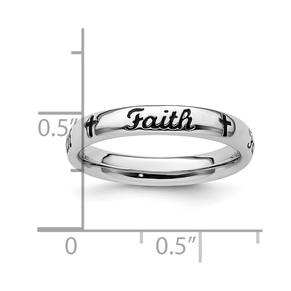 Sterling Silver Stackable Expressions Black Enamel Faith Ring