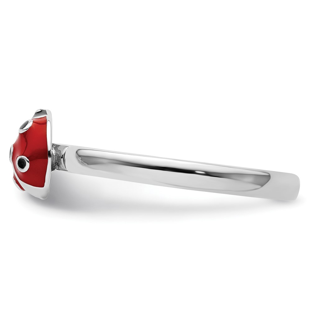 Sterling Silver Stackable Expressions Red/Black Enamel Ladybug Ring