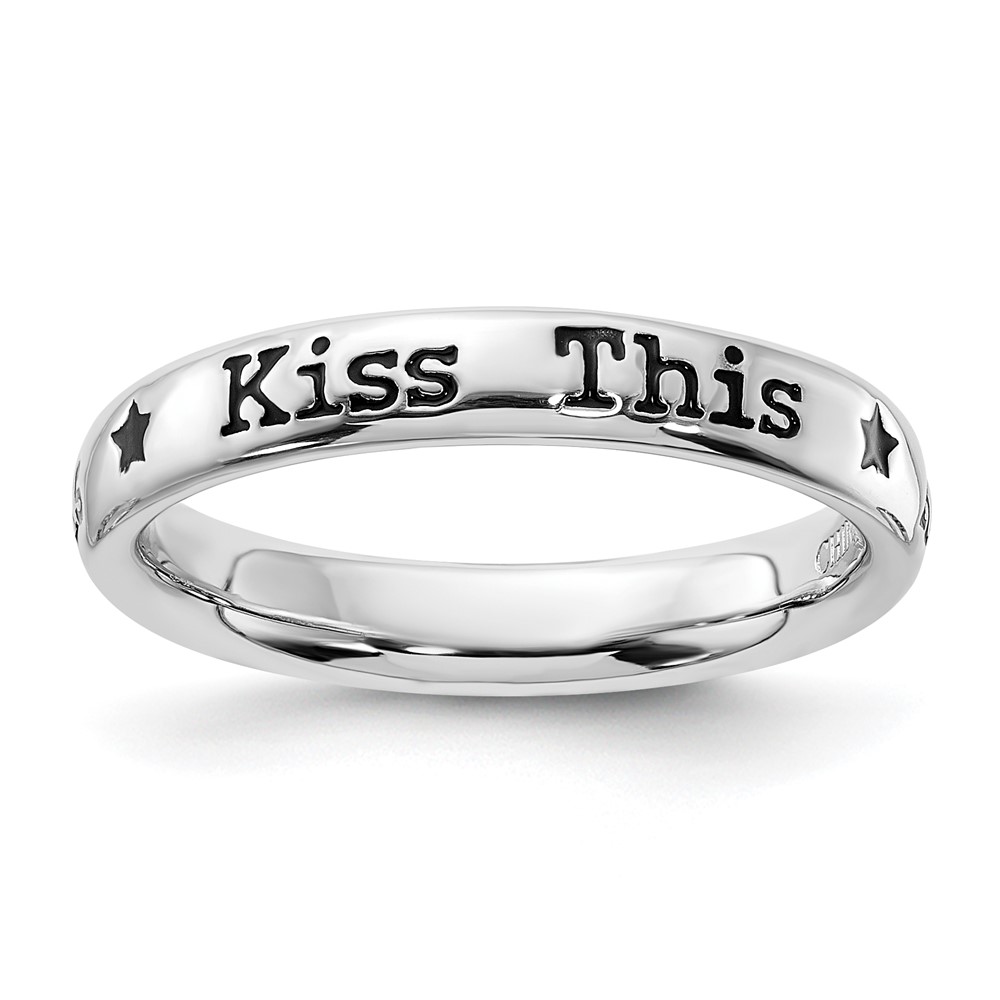 Sterling Silver Stackable Expressions Enameled Lyric Kiss This Ring