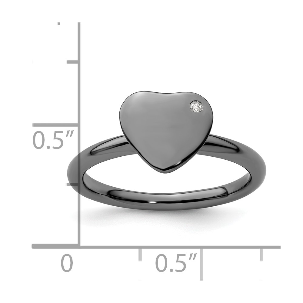 Sterling Silver Stackable Expressions Ruthenium-plated Heart Diamond Ring