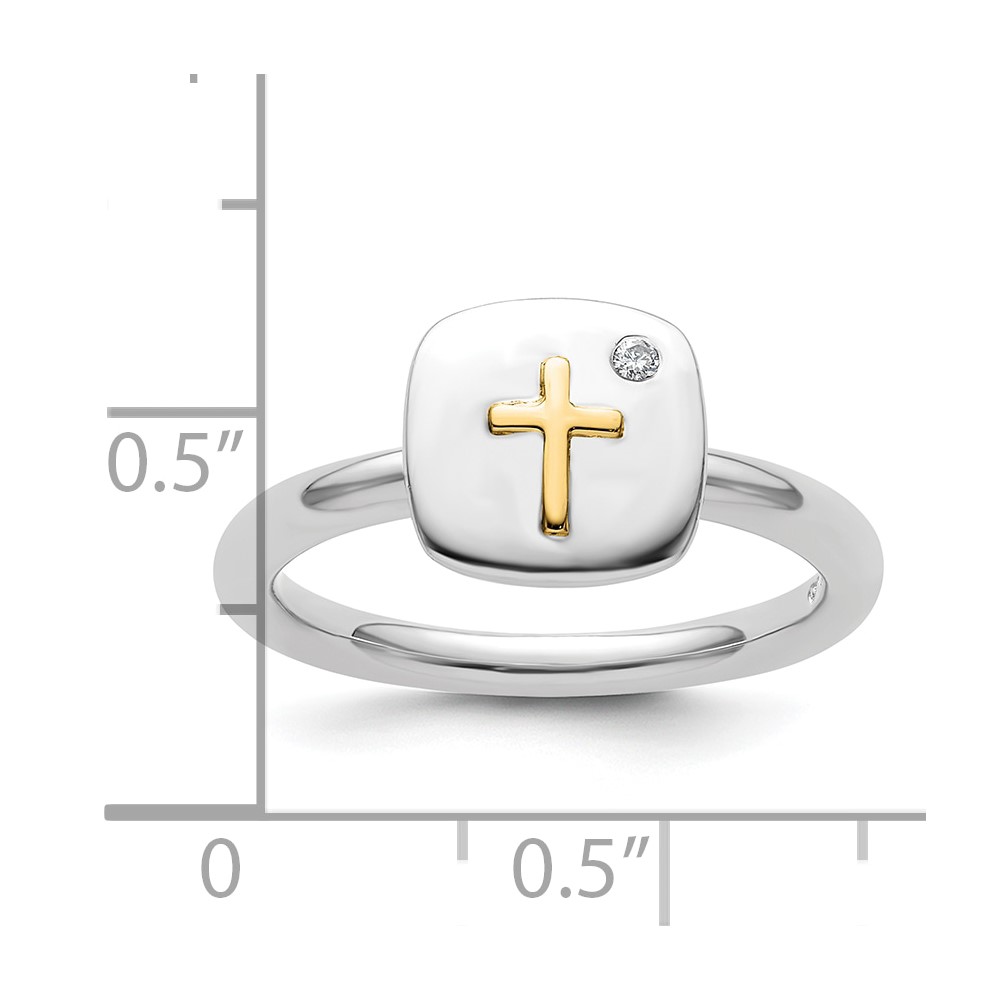 Sterling Silver & 14k Cross Stackable Expressions Diamond Ring