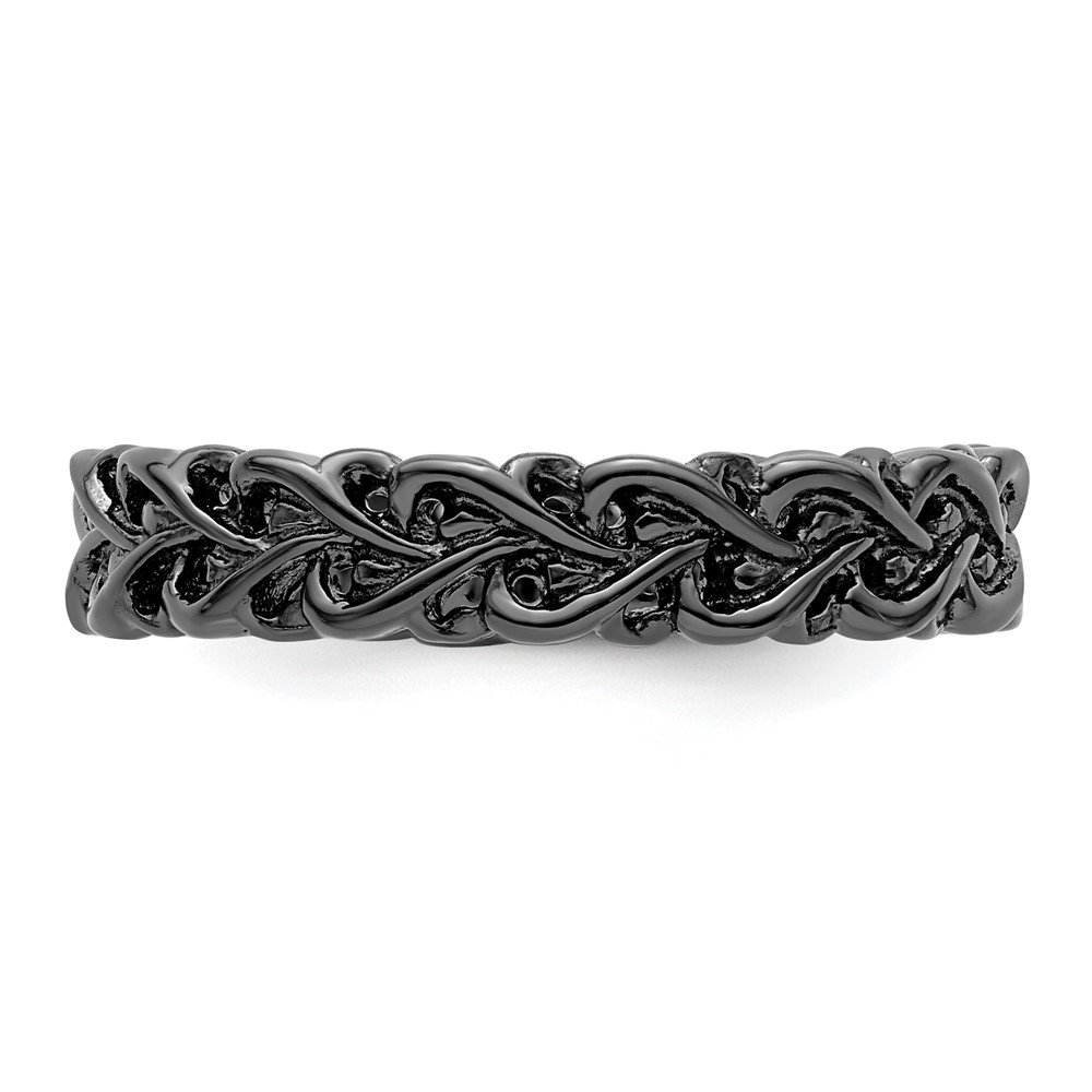 Sterling Silver Stackable Expressions Black-plated Carved