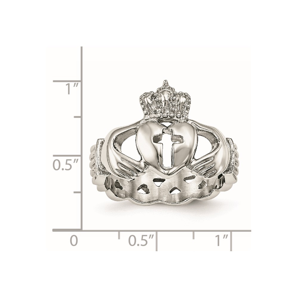 Chisel Stainless Steel Polished Claddagh with Cross Ring