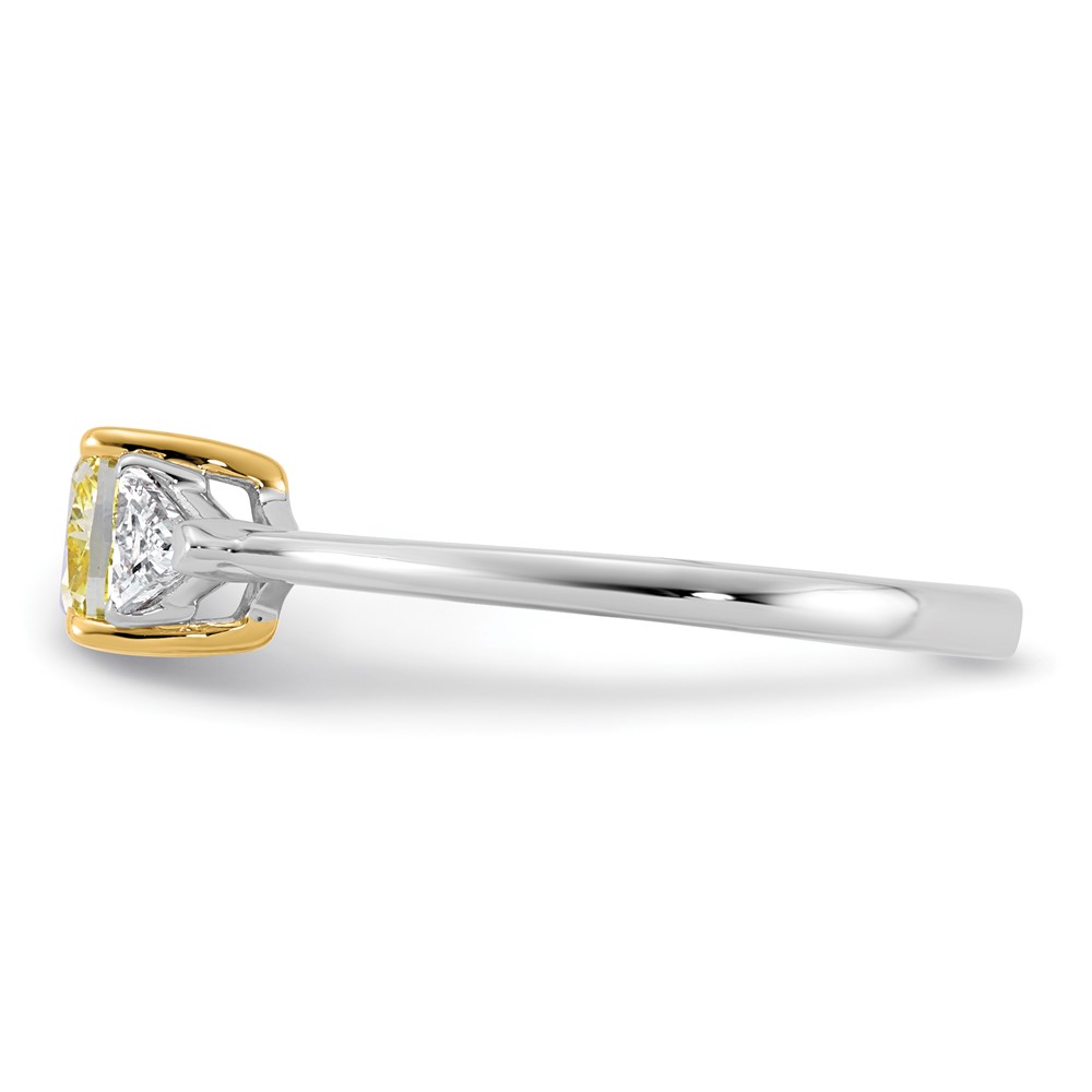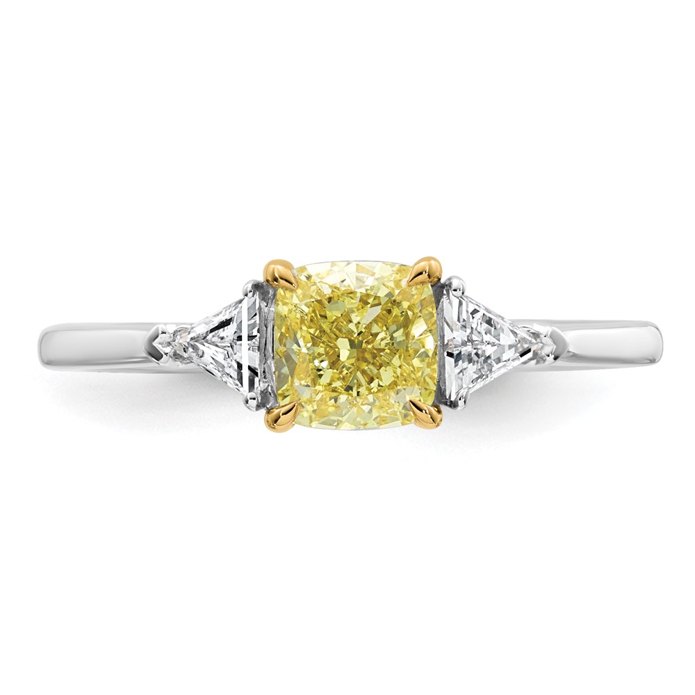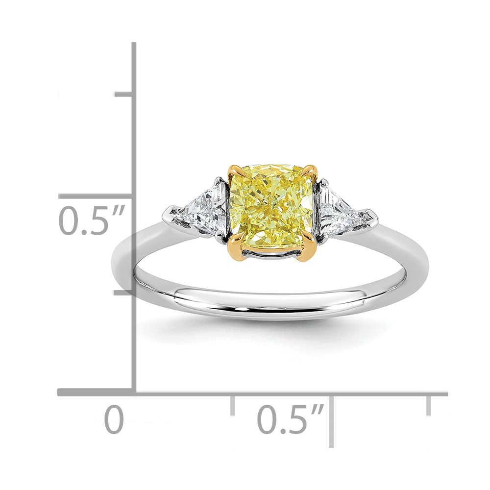 Emma Grace 14K Two-Tone 1 1/4 carat Certified Lab Grown Diamond VS+ Cushion Vivid Yellow & VS+ F+ Trillion Complete Ring