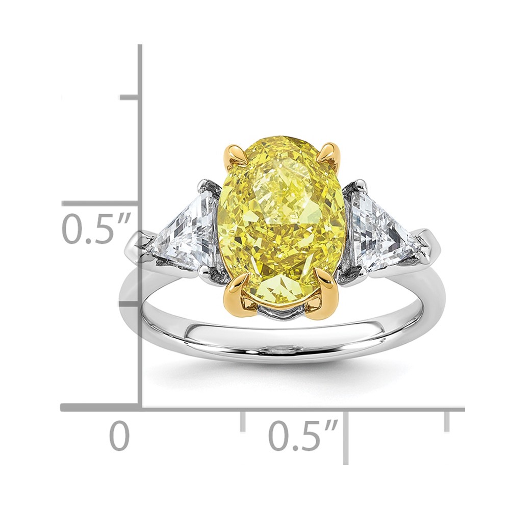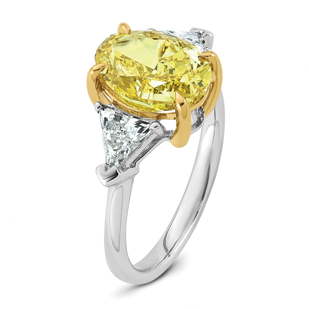 Emma Grace 14K Two-Tone 4 1/2 carat Certified Lab Grown Diamond VS+ Oval Vivid Yellow & VS+ F+ Trillion Complete Ring