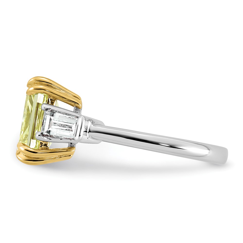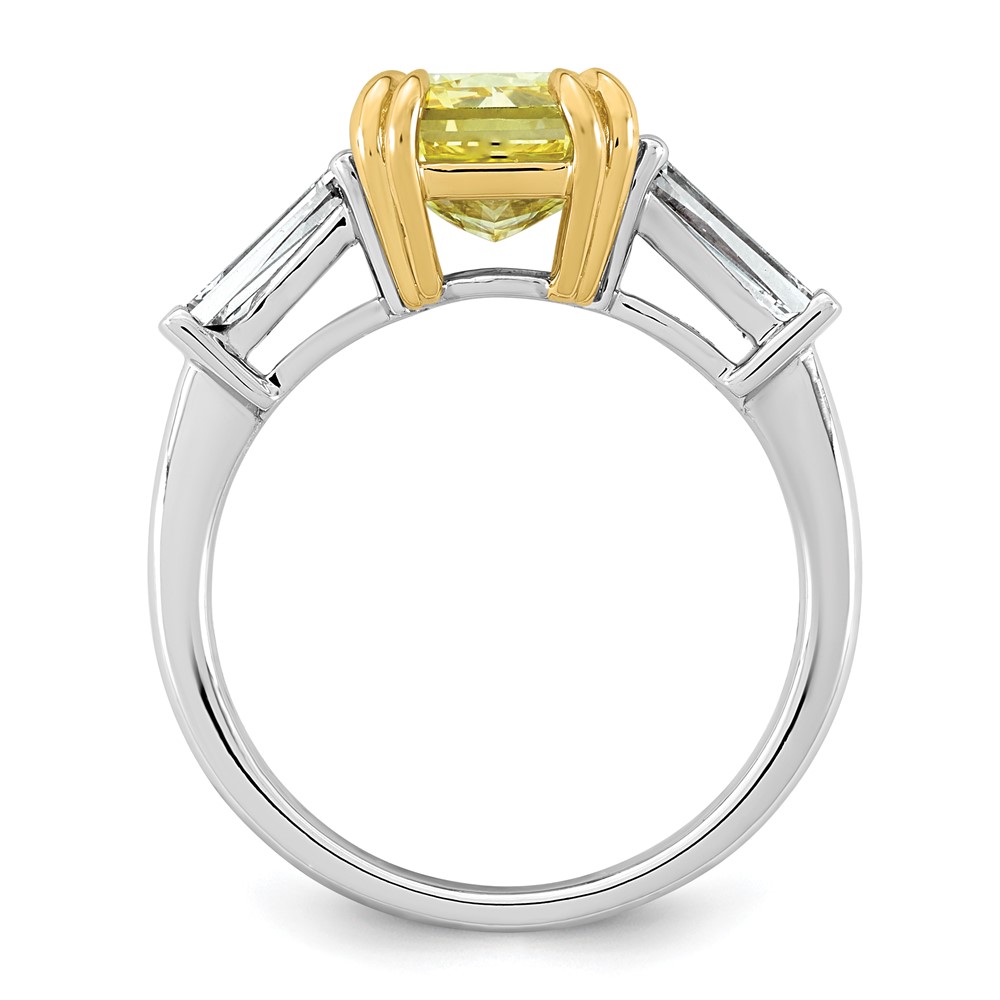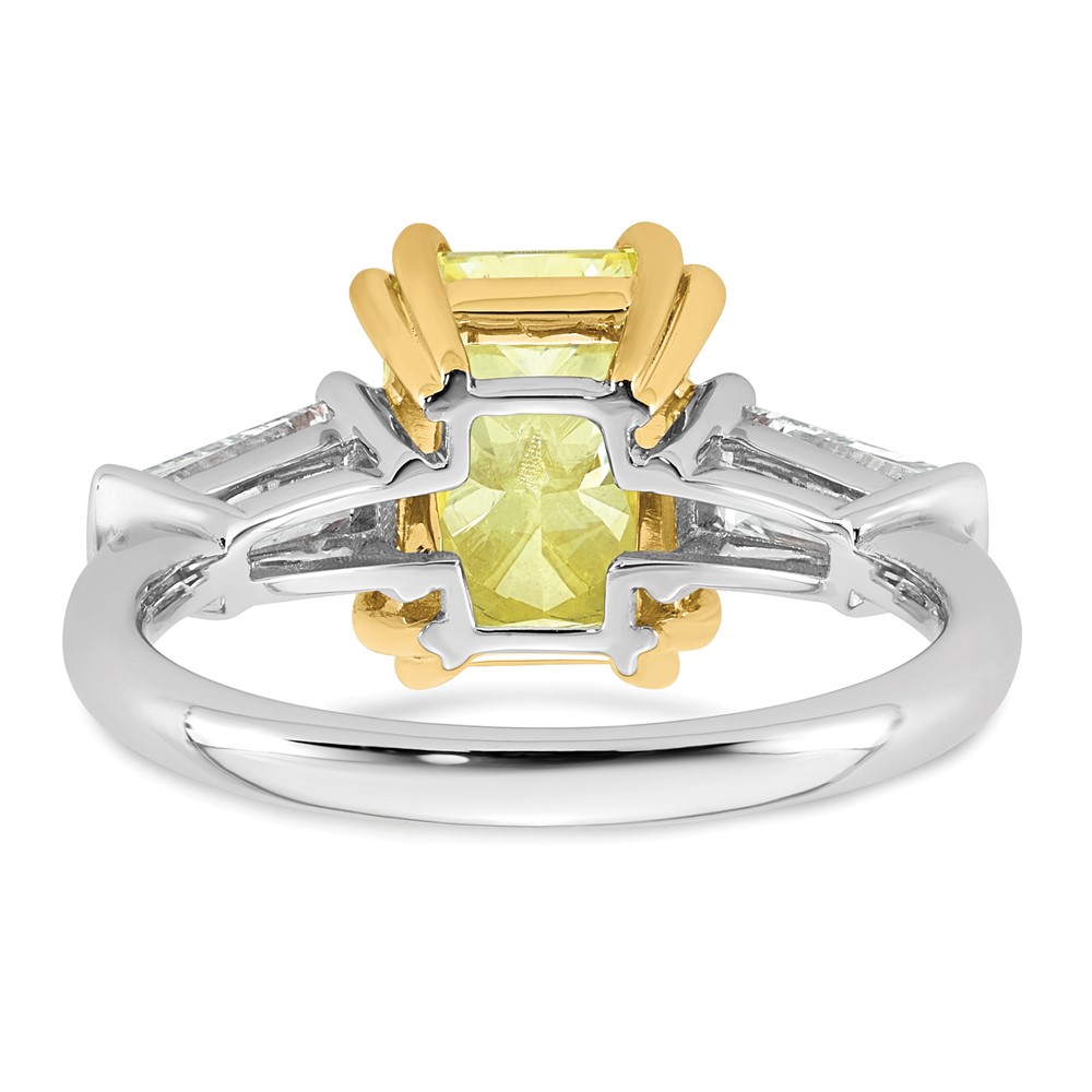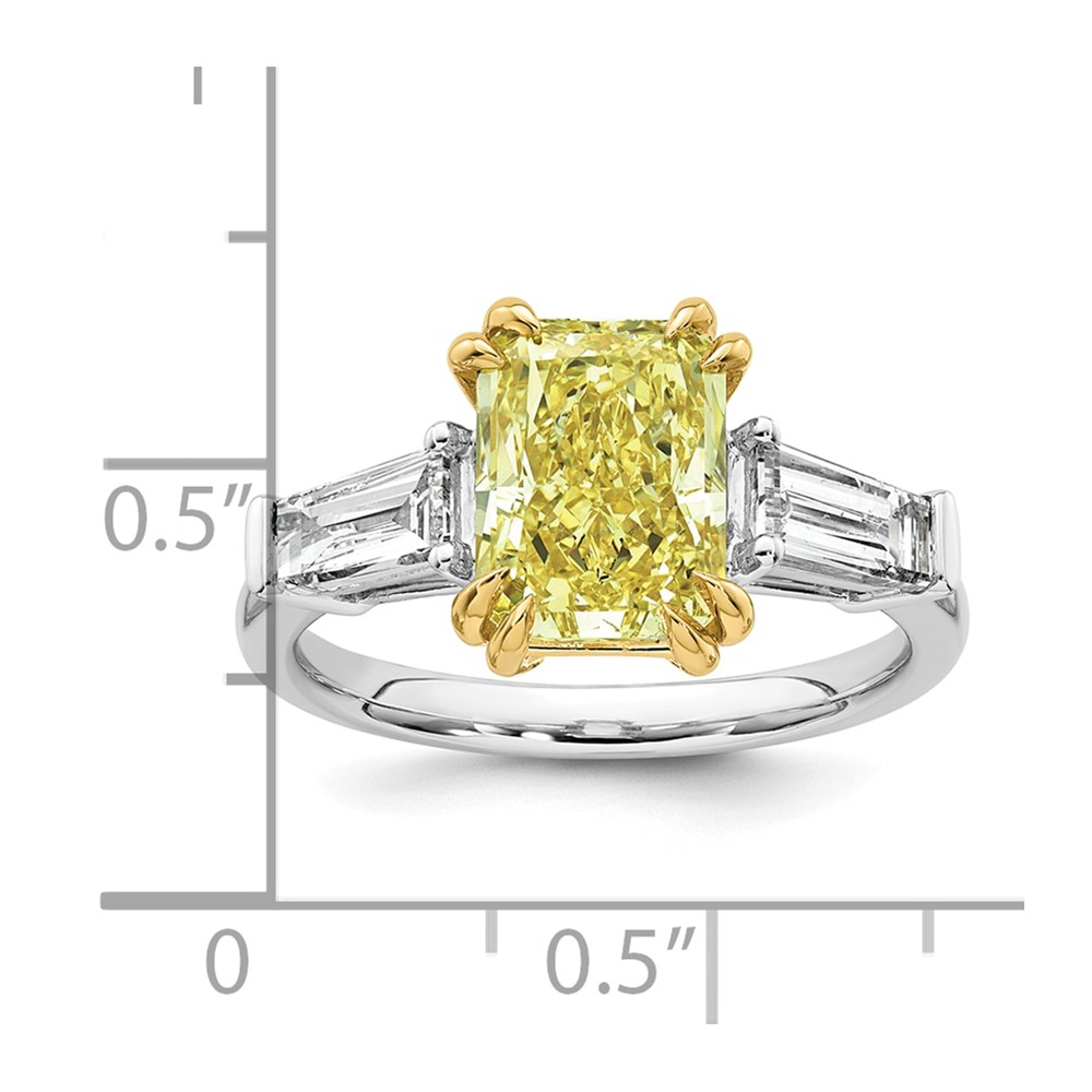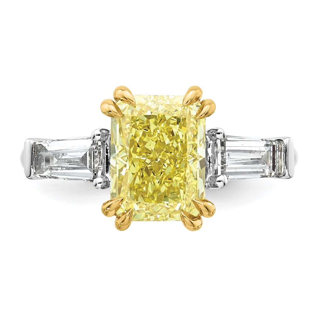 Emma Grace 14K Two-Tone 4 carat Certified Lab Grown Diamond VS+ Radiant Vivid Yellow & VS+ F+ Baguette Complete Ring