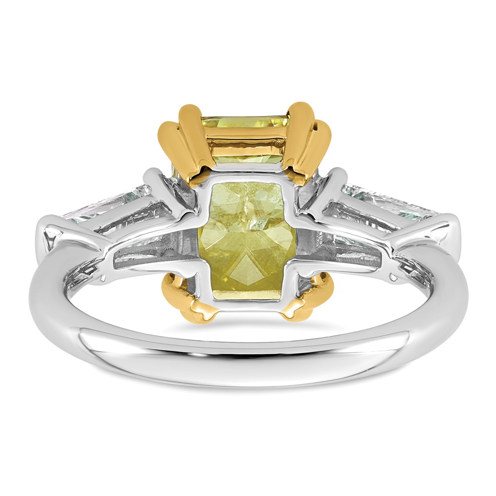 Emma Grace 14K Two-Tone 4 1/2 carat Certified Lab Grown Diamond VS+ Radiant Vivid Yellow & VS+ F+ Baguette Complete Ring