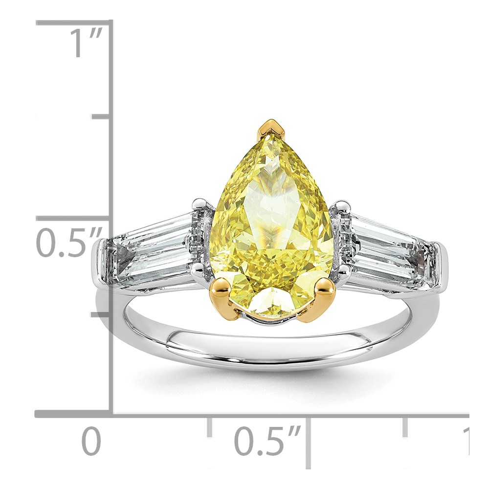 Emma Grace 14K Two-Tone 4 1/3 carat Certified Lab Grown Diamond VS+ Pear Vivid Yellow & VS+ F+ Baguette Complete Ring