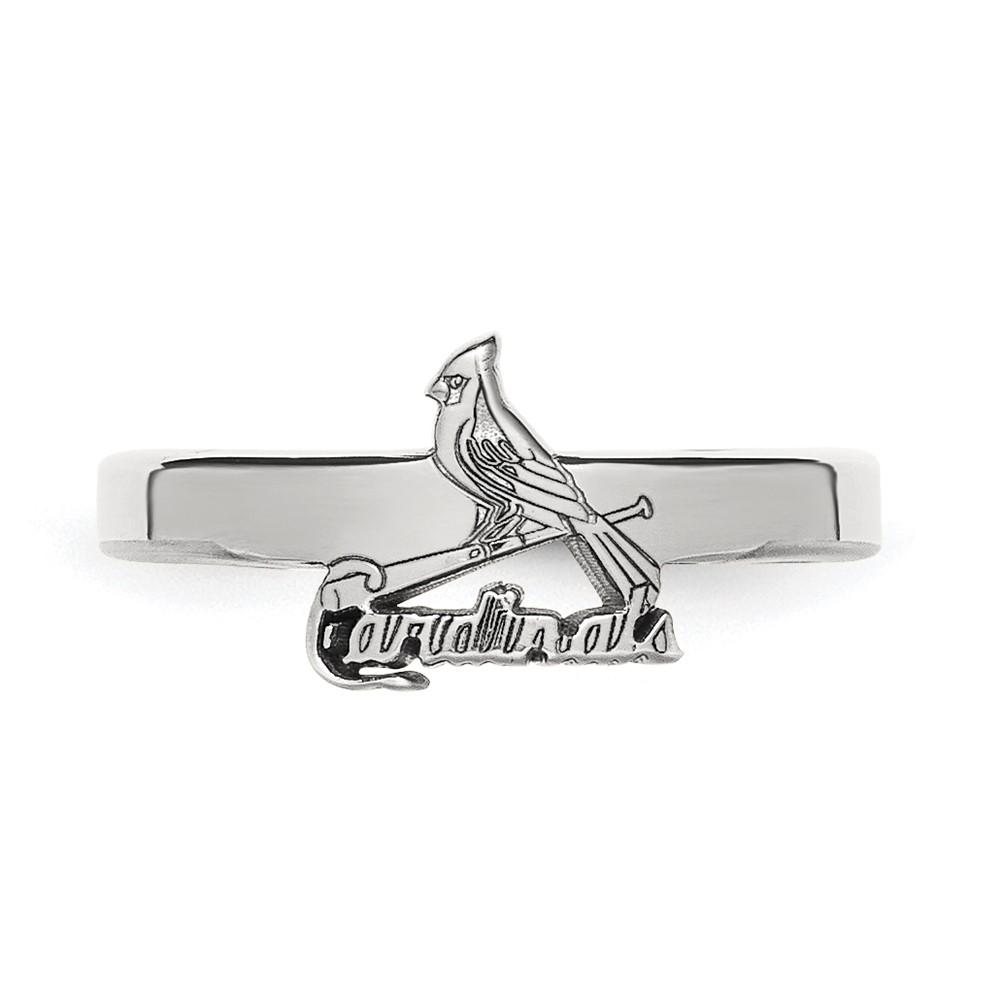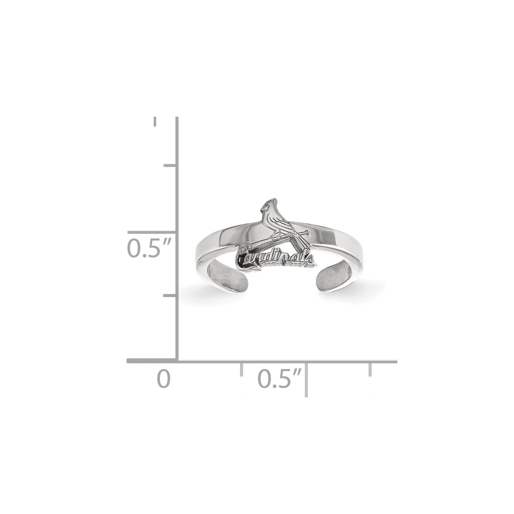 Sterling Silver Rhodium-plated MLB LogoArt St. Louis Cardinals Bird and Bat Toe Ring