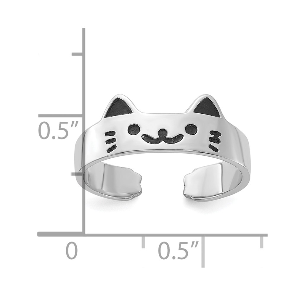 Sterling Silver Rhodium-plated Enameled Cat Adjustable Ring