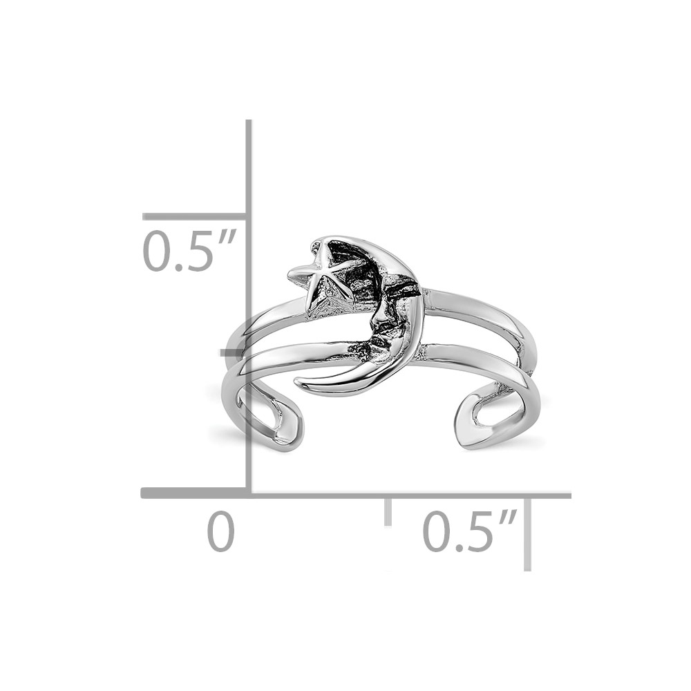 Sterling Silver Rhodium-plated Oxidized Moon and Star Toe Ring