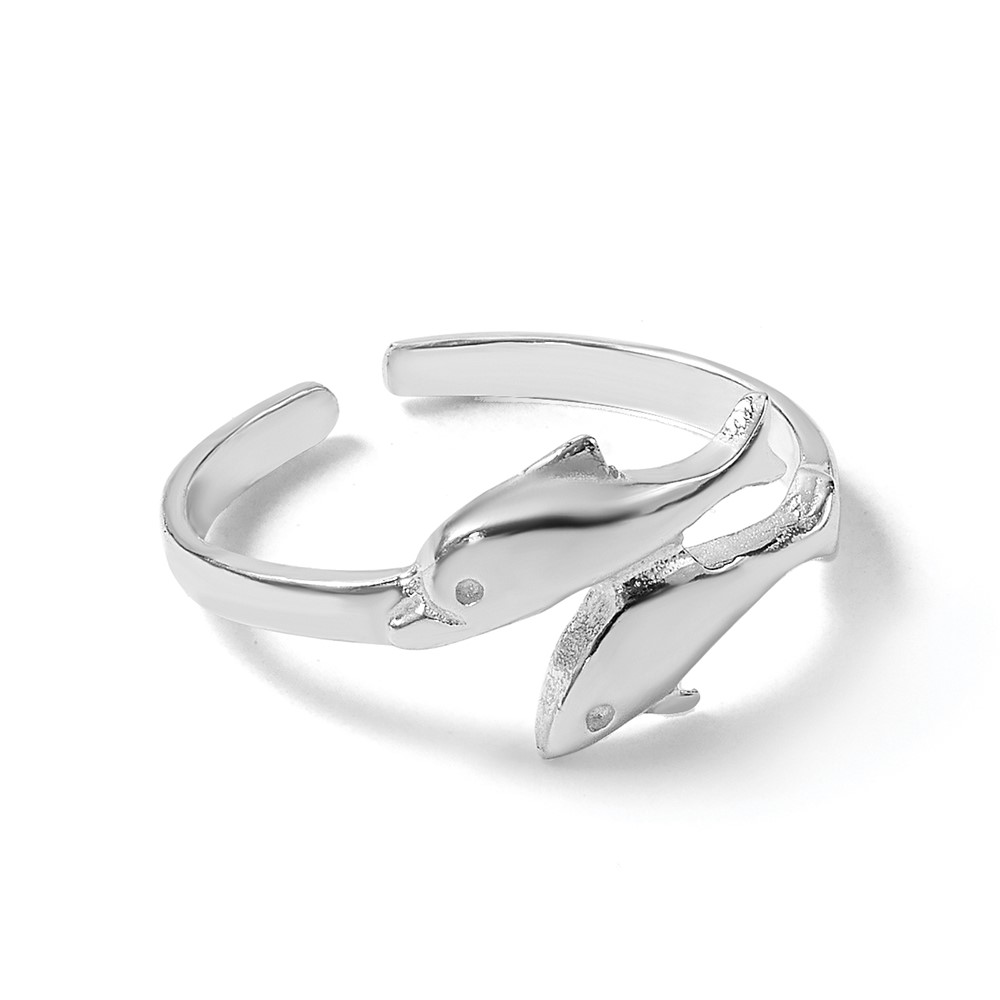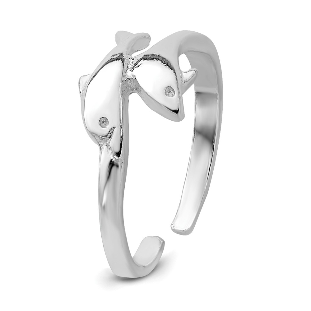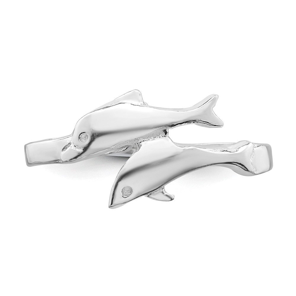 Sterling Silver Rhodium-plated Polished Toe Ring Double Dolphin