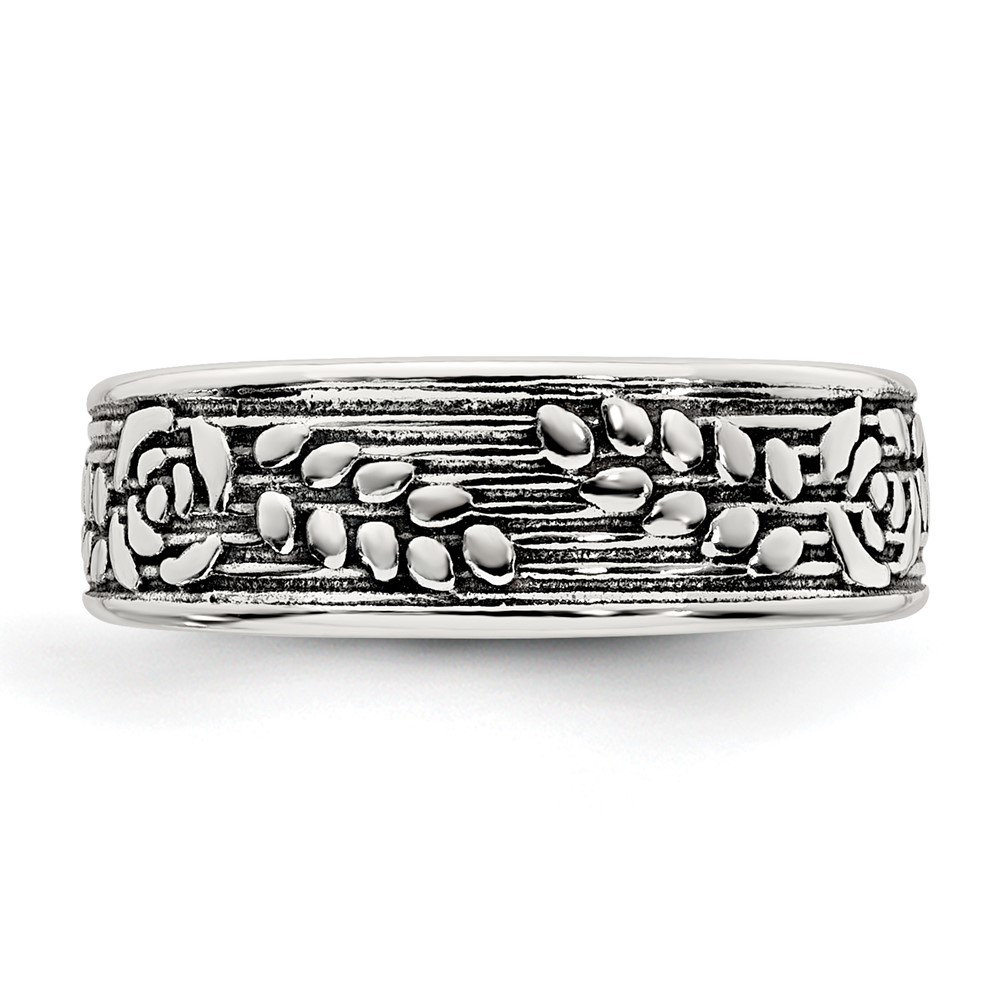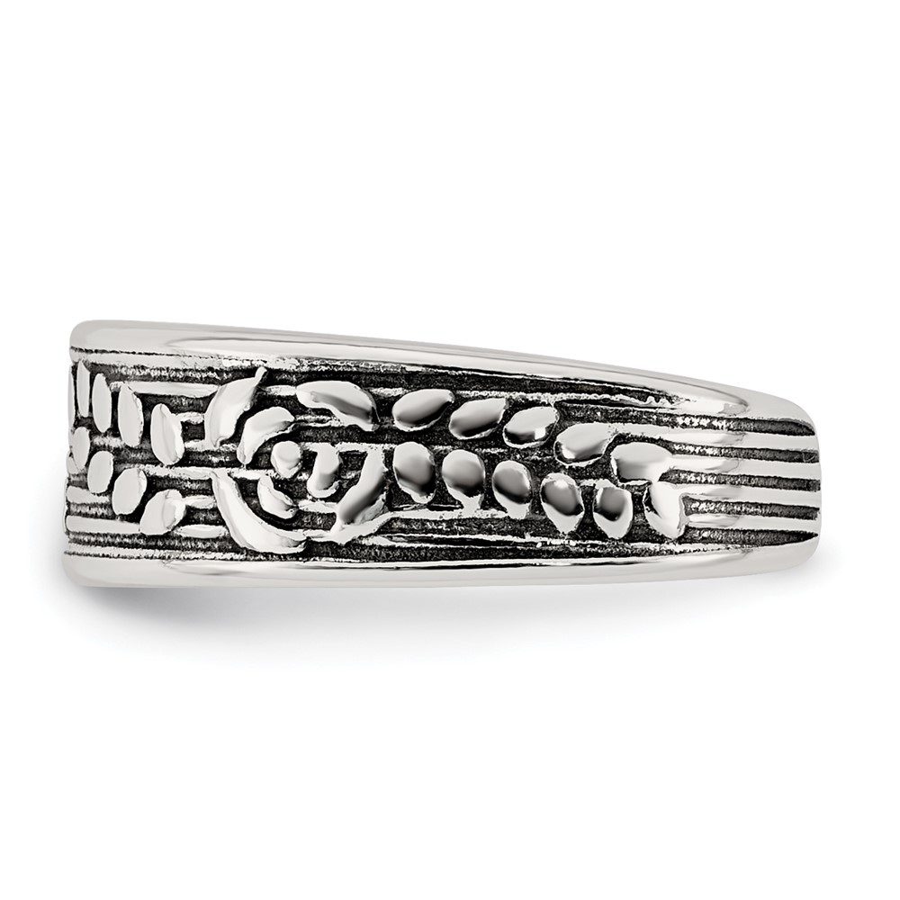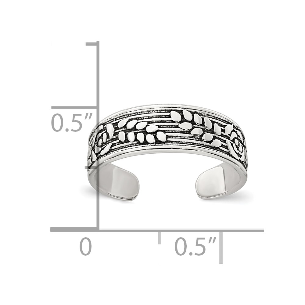 Sterling Silver Polished and Antiqued Rose and Leaf Pattern Toe Ring