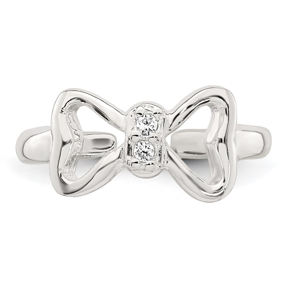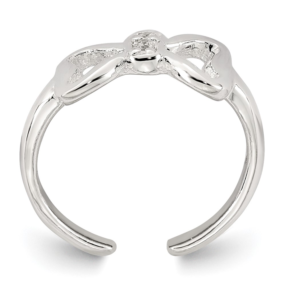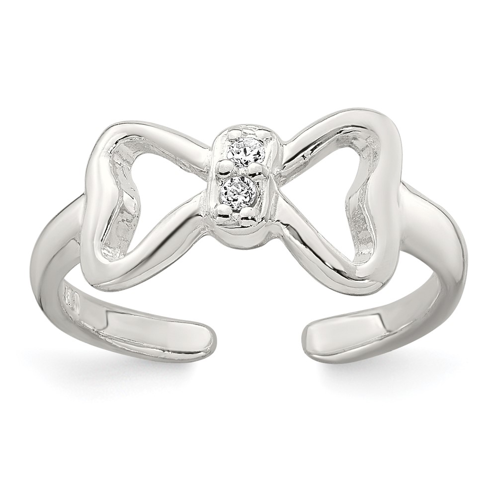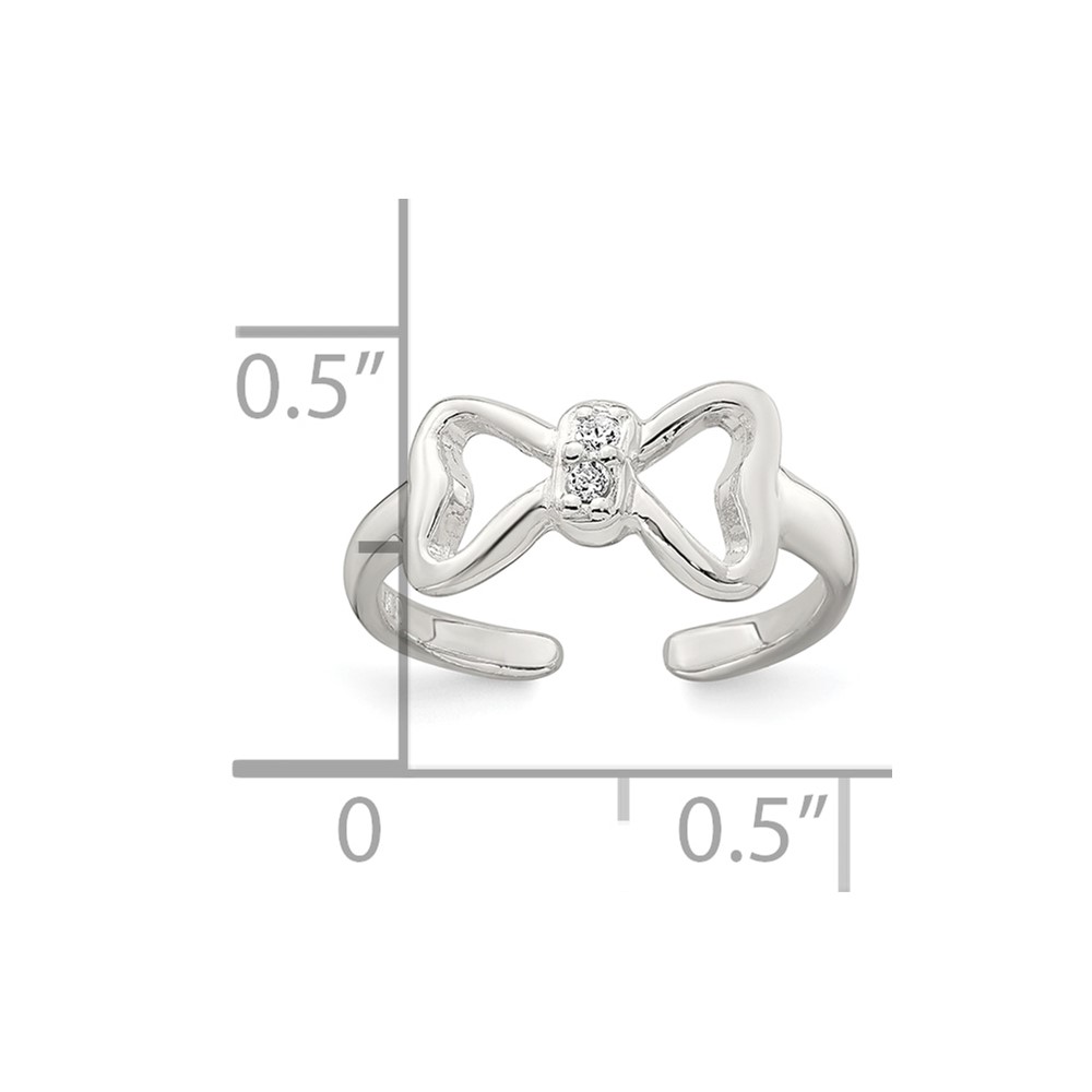 Sterling Silver Polished CZ Bow Adjustable Toe Ring