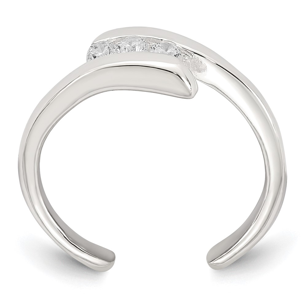 Sterling Silver Polished 3 Stone CZ Bypass Adjustable Toe Ring