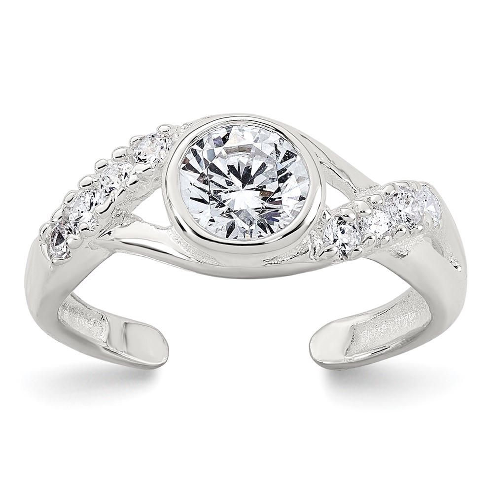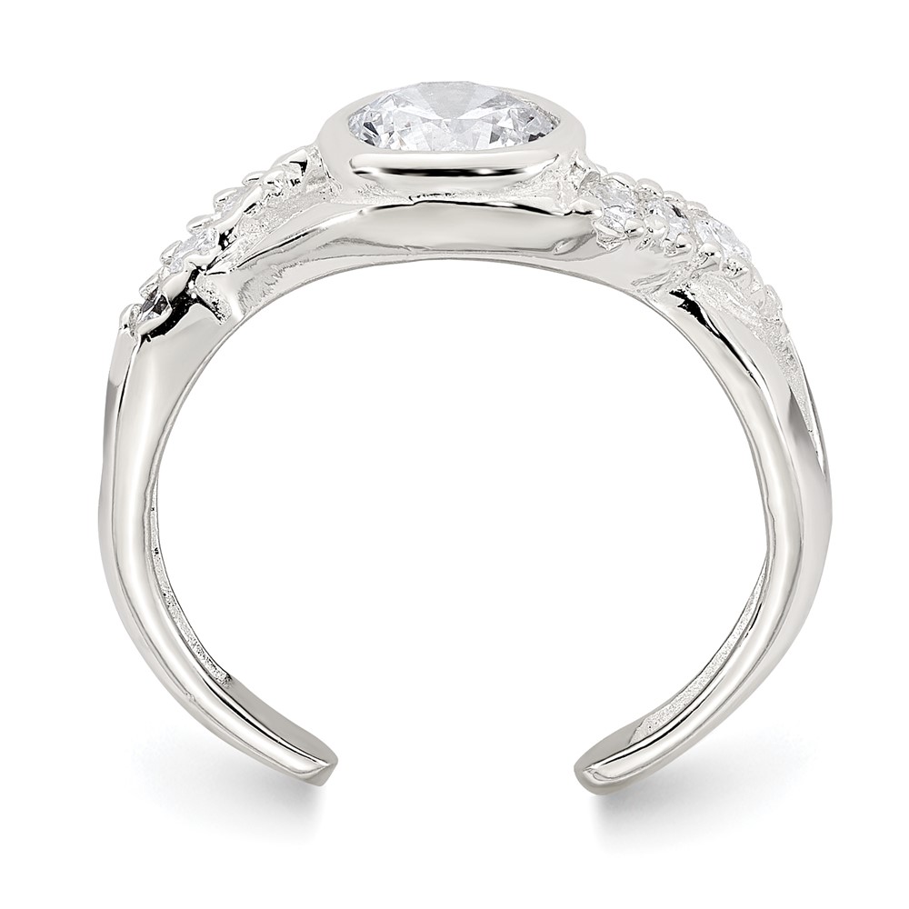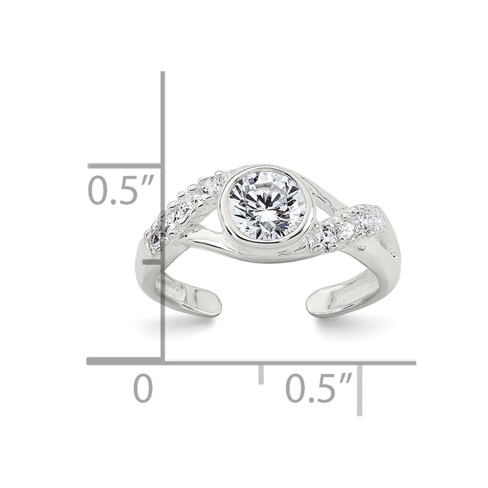 Sterling Silver Polished Fancy CZ Twisted Sides Adjustable Toe Ring
